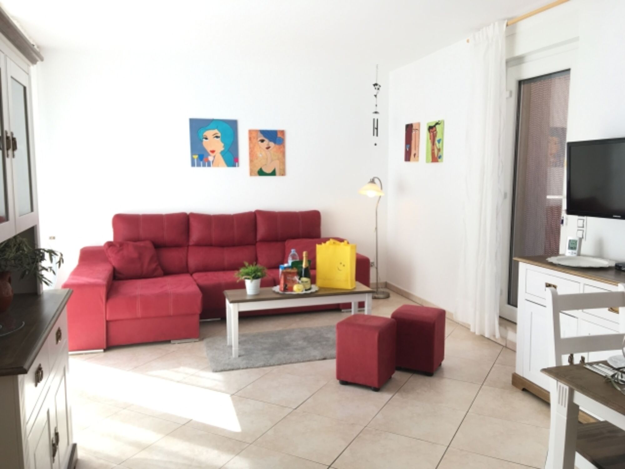 TV, TV-Sat, HDTV Flachbildschirm, Bücher, 3er-Sofa