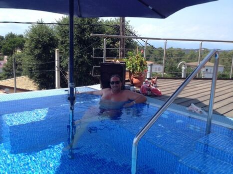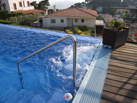 Beheizter Swimming Pool: Der Pool ist mit Unterwasser-Eckbank und Massage/Jacuzzi ausgestattet. Ebenso verfügt er über eine Gegenstromanlage. Bei der Wasseraufbereitung wird auf den Einsatz von Chemi-Tabletten komplett verzichtet. Es kommt eine moderne Elektrolyseanlage zum Einsatz. Das Wasser ist dadurch ganz leicht salzig und sehr haut- und augenfreundlich.