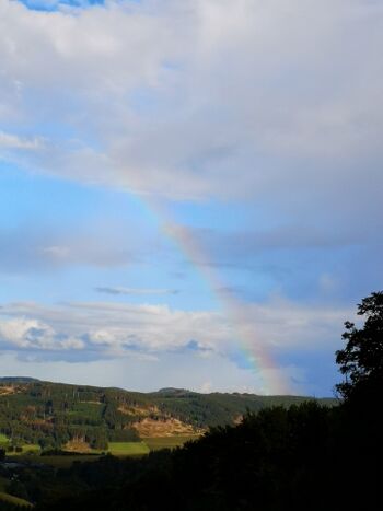 Wunderschön gelegene Ferienwohnung direkt in der Natur. Das Haus wurde 2000 gebaut. Die Ferienwohnung liegt im Erdgeschoss. Blick auf Wälder und Berge. Wanderschuhe anziehen und los laufen.