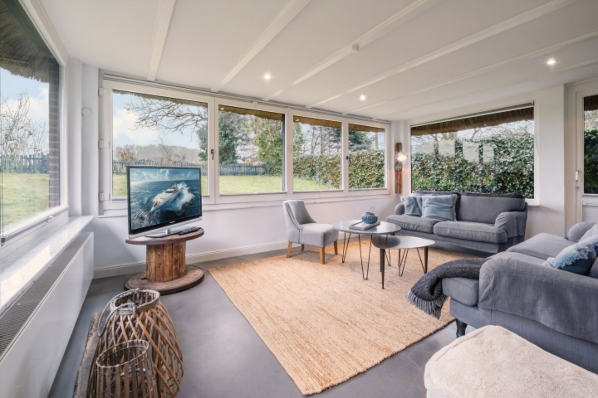 Die Küche, mit den liebevoll aufgearbeiteten Möbeln ist voll ausgestattet. Hier können Sie sich nach Lust und Laune selbst versorgen. Das schöne Wintergarten-Wohnzimmer ist direkt nebenan und bietet von den zwei Sofas einen schönen Ausblick in den ungestörten Garten. Hier gibt es auch einen Fernseher mit Satelliten-TV.