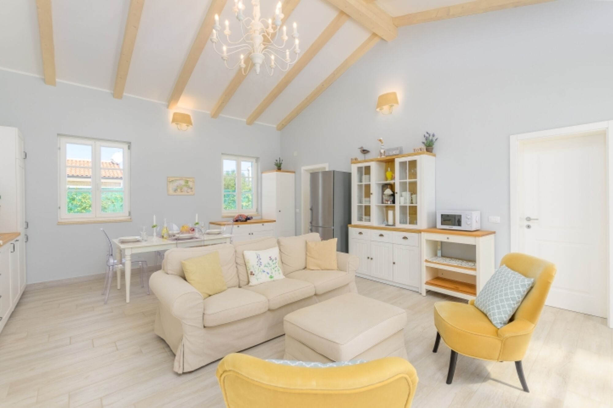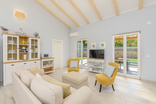 Die Villa bietet Platz für insgesamt 6 Personen. Es verfügt über 3 Schlafzimmer, von denen 2 über ein eigenes Bad verfügen. Es gibt auch ein drittes Badezimmer im Haus. Die Villa hat einen offenen Grundriss Wohnzimmer, Küche und Esszimmer.