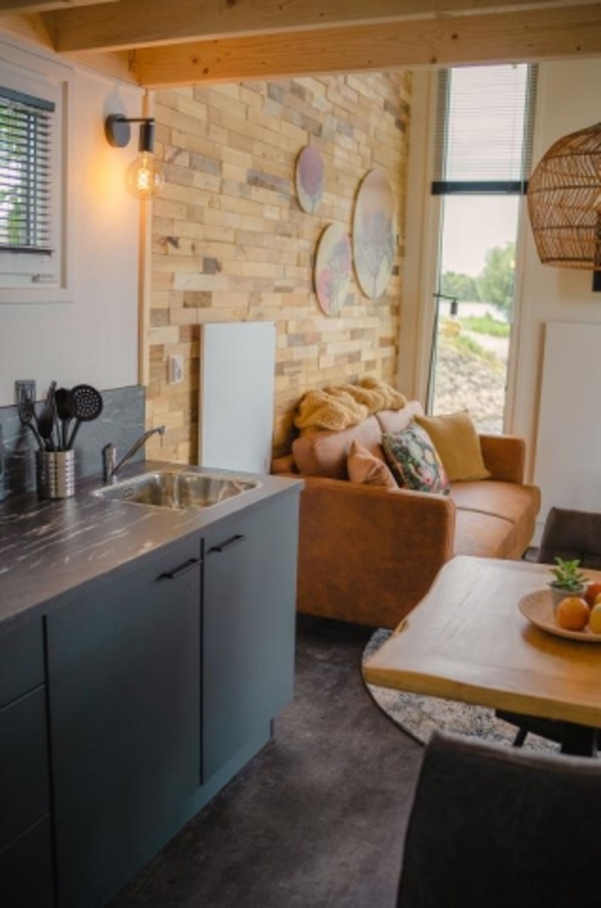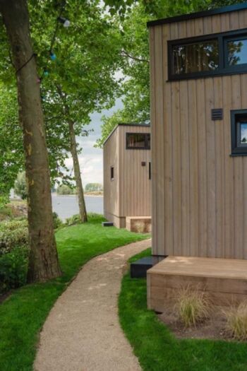 Zurück zu den Grundlagen, aber ausgestattet mit allem, was Sie für einen unvergesslichen Aufenthalt benötigen. Unsere neuen Tiny Houses sind gemütlich, modern und kompakt. Genießen Sie die fantastische Aussicht in vollen Zügen, da diese Häuser auf der Spitze einer Landzunge liegen und von Wasser umgeben sind. Direkt am Niederrhein und ein einzigartiger Blick auf 2 Jachthäfen, mehrere Strände und eine gegenüberliegende Insel. Ruhige und besondere Lage. Das bedeutet, dass ihr während eures Aufenthaltes in einem Tiny House wieder richtig aufeinander achtet. Außerdem ist der große Vorteil eines Tiny House, dass es einen nachhaltigen Charakter hat. So können Sie mit einem guten Gefühl einen verantwortungsvollen Urlaub genießen. Also genieße es in vollen Zügen! Unsere Tiny River Houses vermitteln aufgrund der hohen Decken und Fenster mit Blick auf das Wasser ein sehr geräumiges Gefühl.