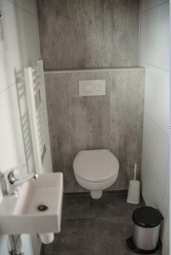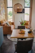 Im Haus selbst finden Sie im Erdgeschoss ein modernes, gemütliches Wohnzimmer, eingerichtet mit einem stilvollen Sofa, einem Sessel, einem Couchtisch, einem Esstisch für 2 Personen und einem Flachbildfernseher. Die kompakte Küche ist modern eingerichtet mit Herd, Kühlschrank mit Gefrierfach, Wasserkocher, Nespresso-Kaffeemaschine und Inventar für 2 Personen. Das Badezimmer mit Dusche, Waschbecken und Toilette befinden sich ebenfalls im Erdgeschoss.