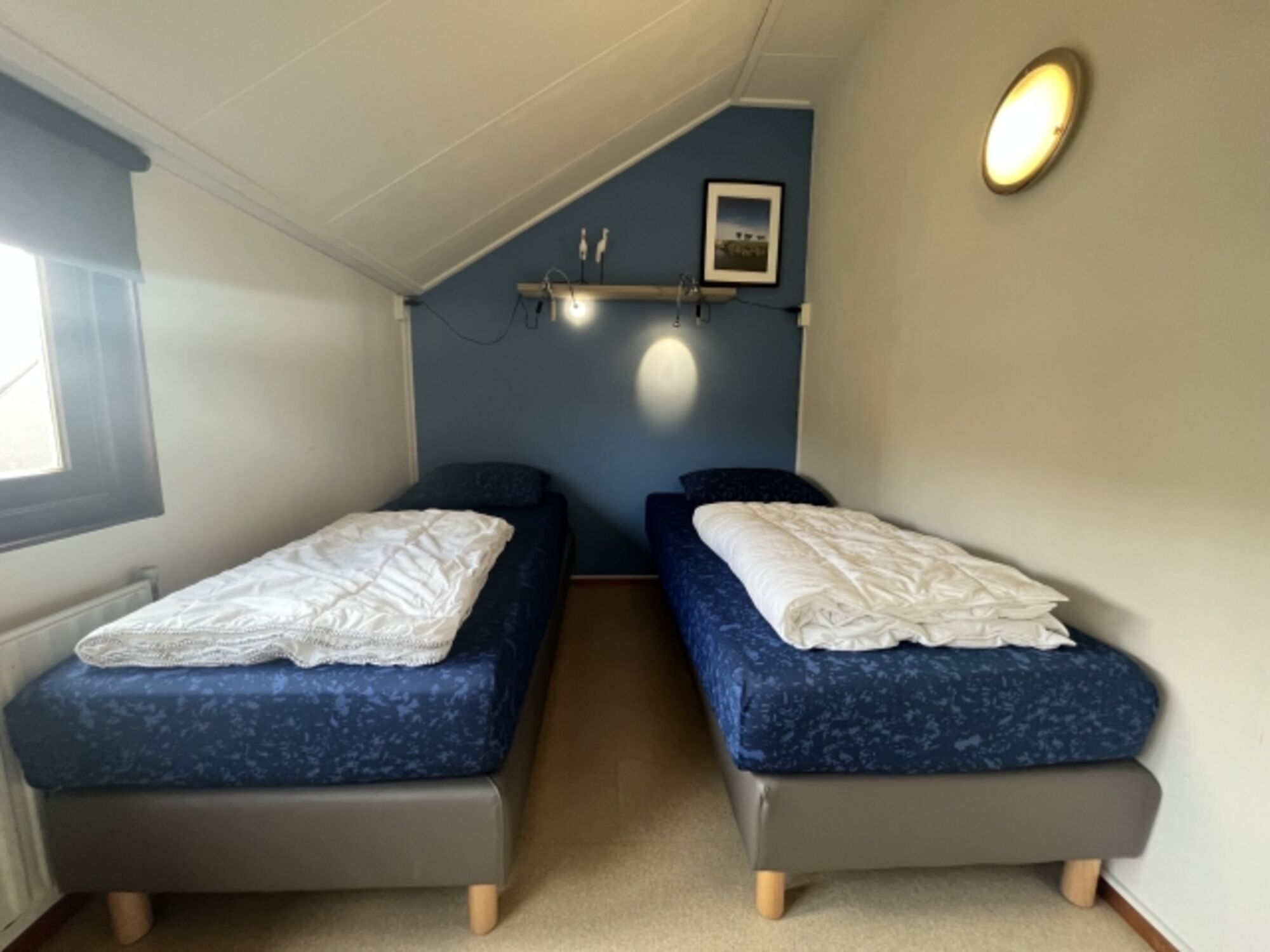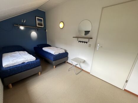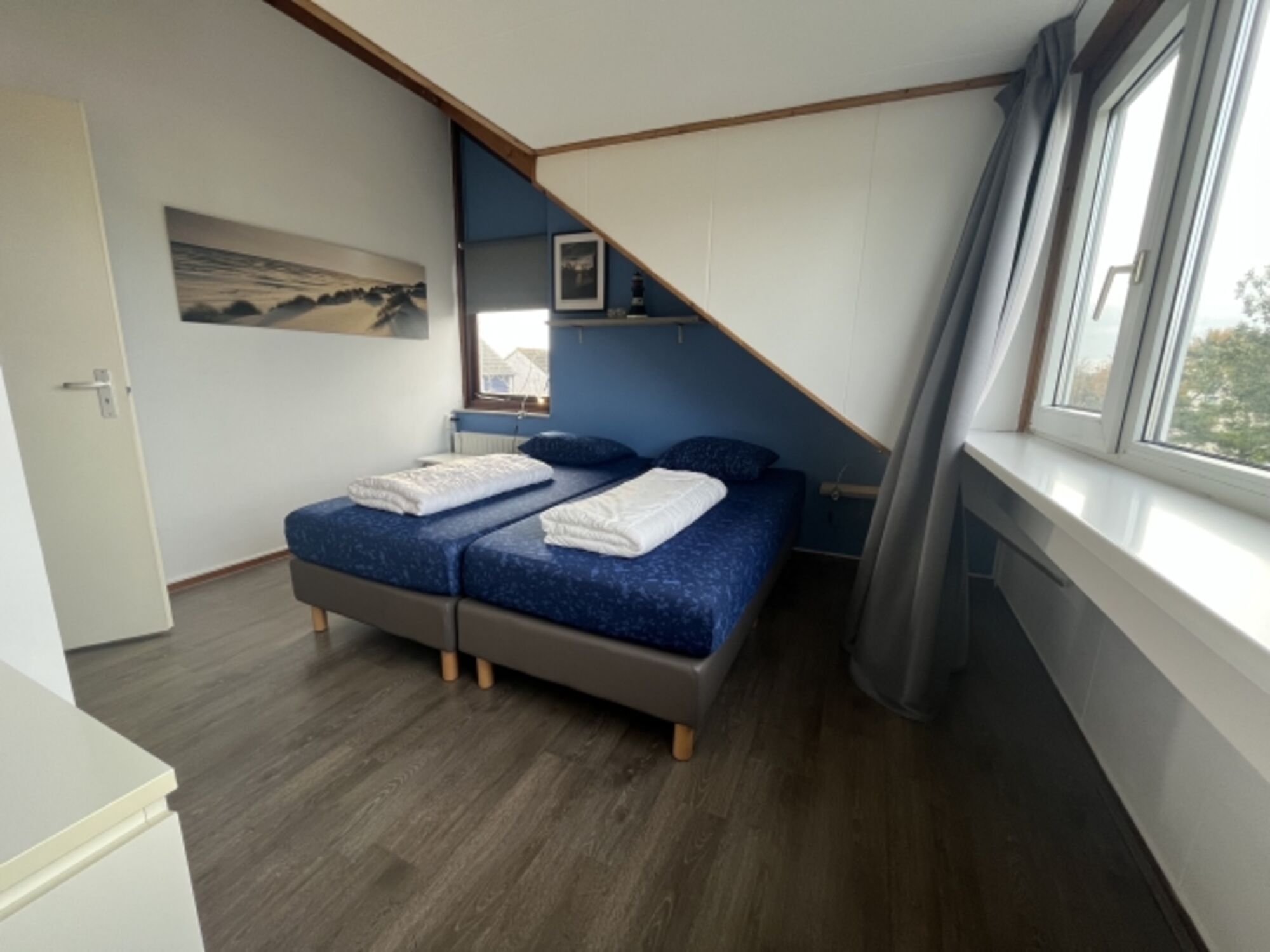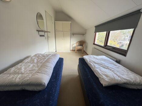 ✔ Zwei Schlafzimmer im Obergeschoss, jeweils mit einem Doppelbett.