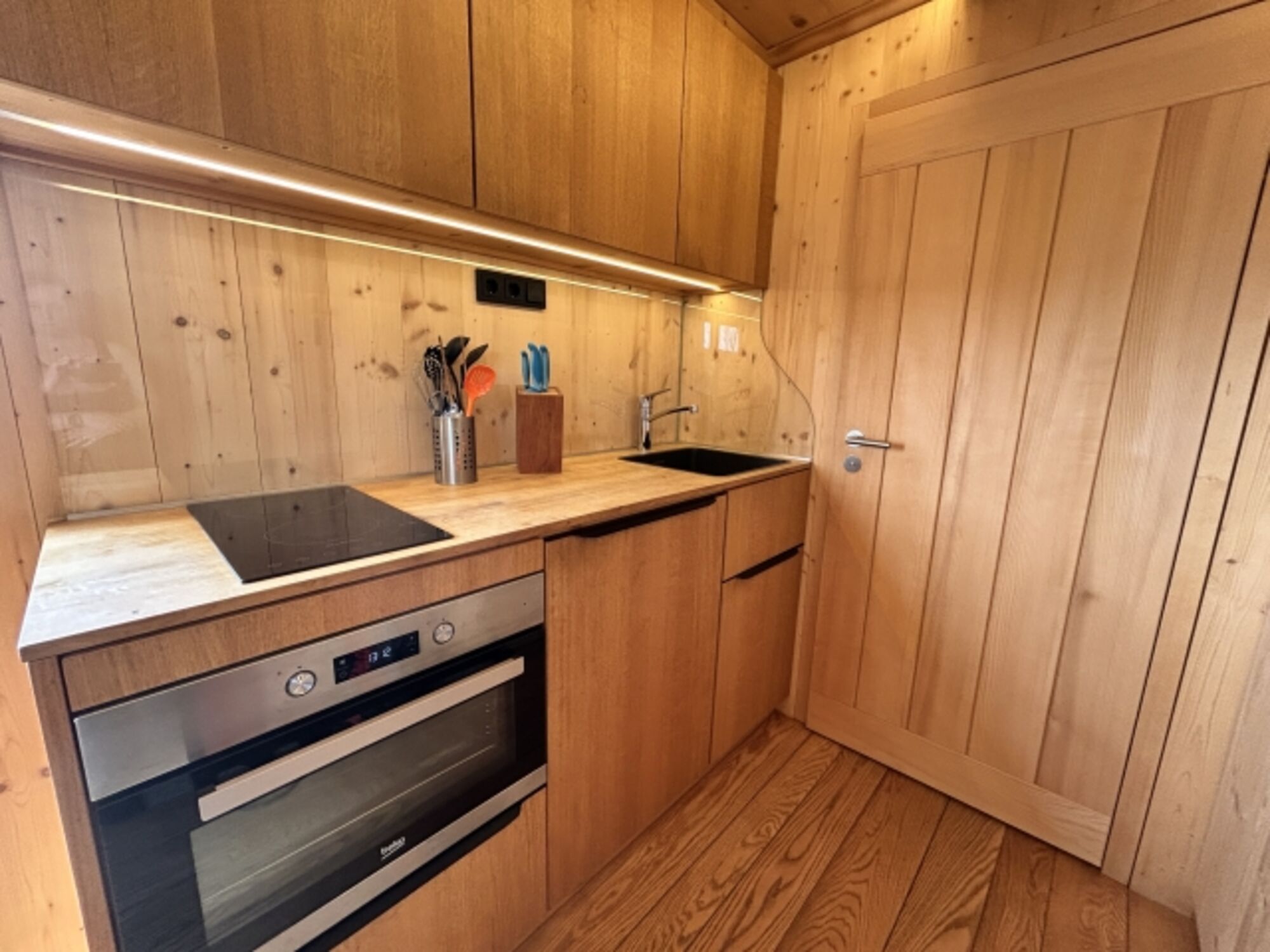 Sowohl eine gut ausgestattete Küchenzeile mit 2-Plattenherd, Backofen, Kaffeemaschine und Wasserkocher als auch ein Badezimmer mit Dusche/WC sind im Haus vorhanden.