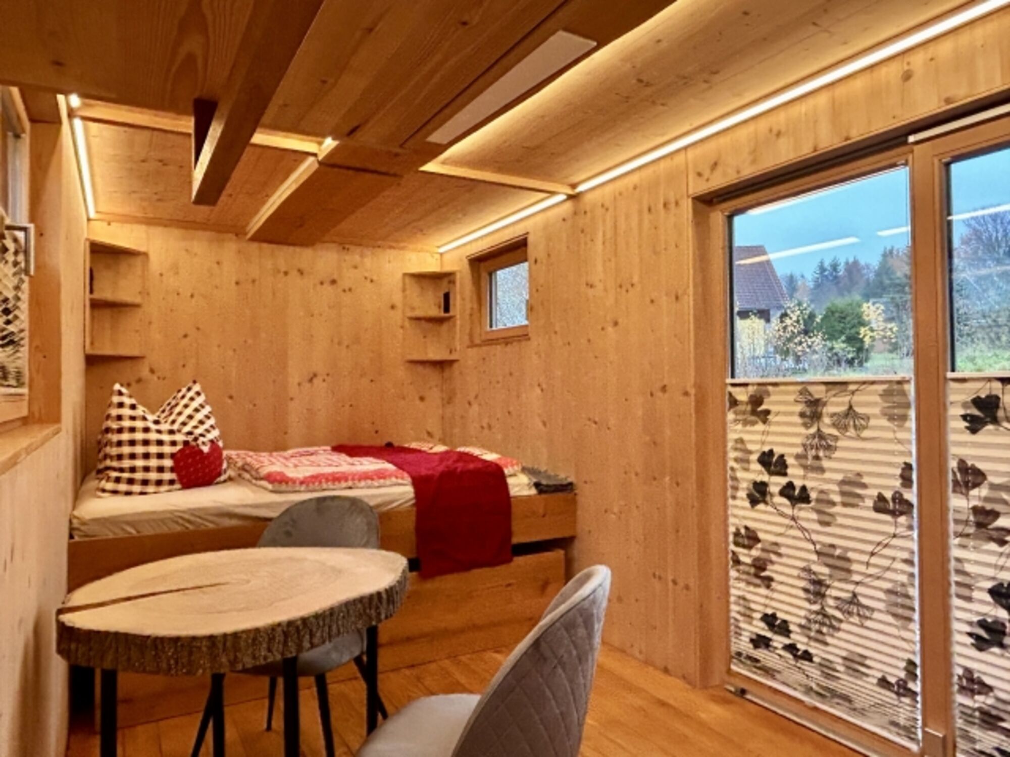 Geignet für 2-4 Personen, Vollholz Minihaus aus Lärchenholz heimischer Wälder, ca 20 qm Wohnfläche, waldähnliches Grundstück, direkt am Wanderweg.