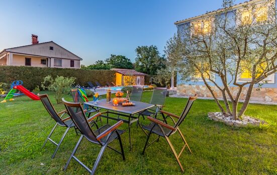 Der Hof des Hauses ist mit besonderer Liebe zum Detail dekoriert und ist typisch für traditionelle istrische Häuser. Wir garantieren, dass Sie das wahre Gefühl des istrischen Lebens spüren werden. Das Haus verfügt über mehrere Terrassen, auf denen Sie sich entspannen und auf das gute Leben anstoßen können. Außerdem gibt es im Hof viele romantische Plätzchen, an denen Sie sich zurückziehen und ein gutes Buch lesen können. Im Hof gibt es auch einen privaten Pool, Schaukeln und eine Rutsche für Kinder. Ein Holzkohlegrill steht für die Zubereitung von Sommerabendessen zur Verfügung.