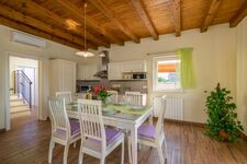 Die Villa bietet Platz für bis zu 8 Personen und verfügt über eine voll ausgestattete Küche mit Esszimmer, ein Wohnzimmer, eine Toilette und 3 Schlafzimmer mit eigenem Bad. Außerdem hat ein Schlafzimmer Zugang zum Balkon, von dem aus man einen Blick auf das Meer und die schöne Landschaft hat.