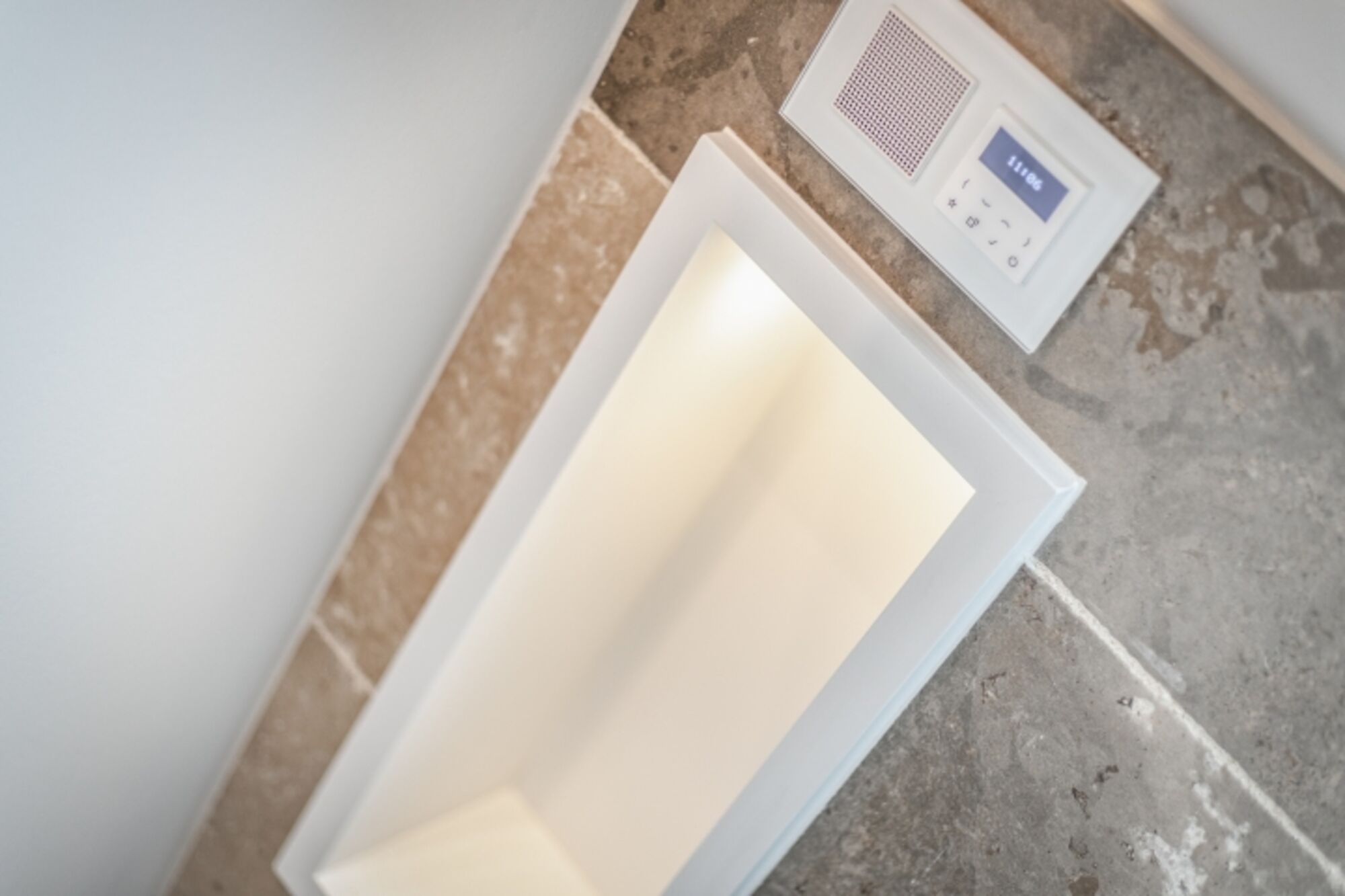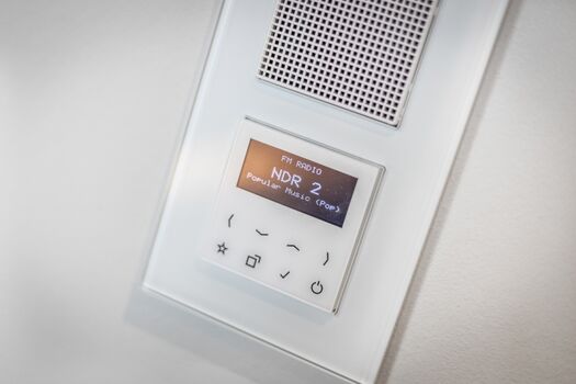 Holzpaneele veredelt. GIRA-Schaltsysteme aus Glas sowie Einbauradios gehören mit zu der