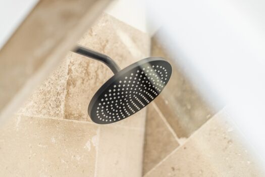 Regendusche, Spiegel, Fenster im Bad