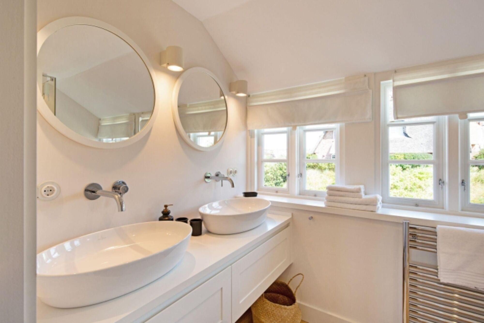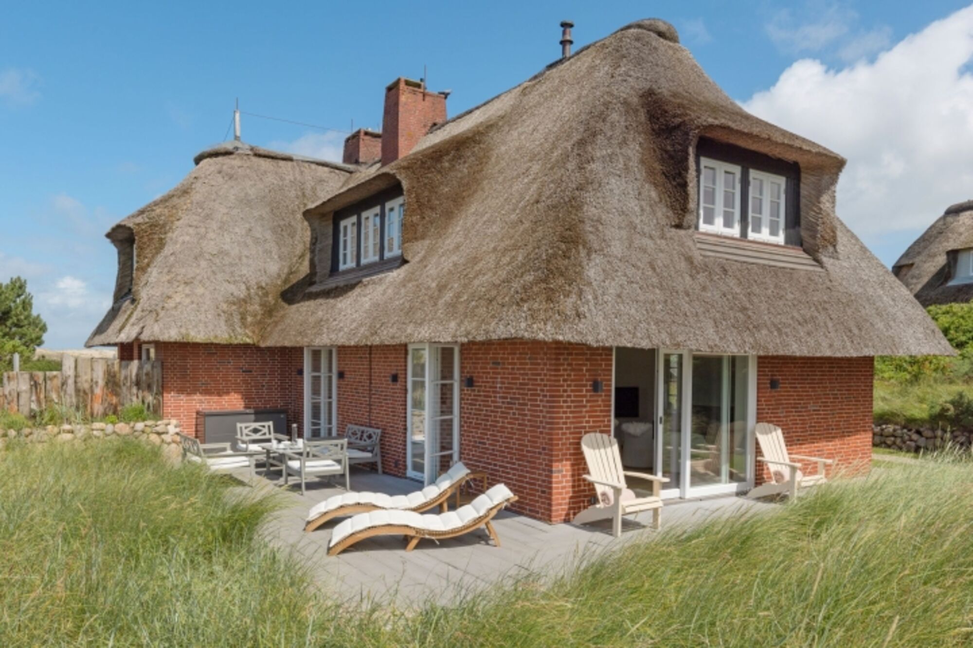 Modernes Feriendoppelhaus unter Reet mit unverbautem Meerblick