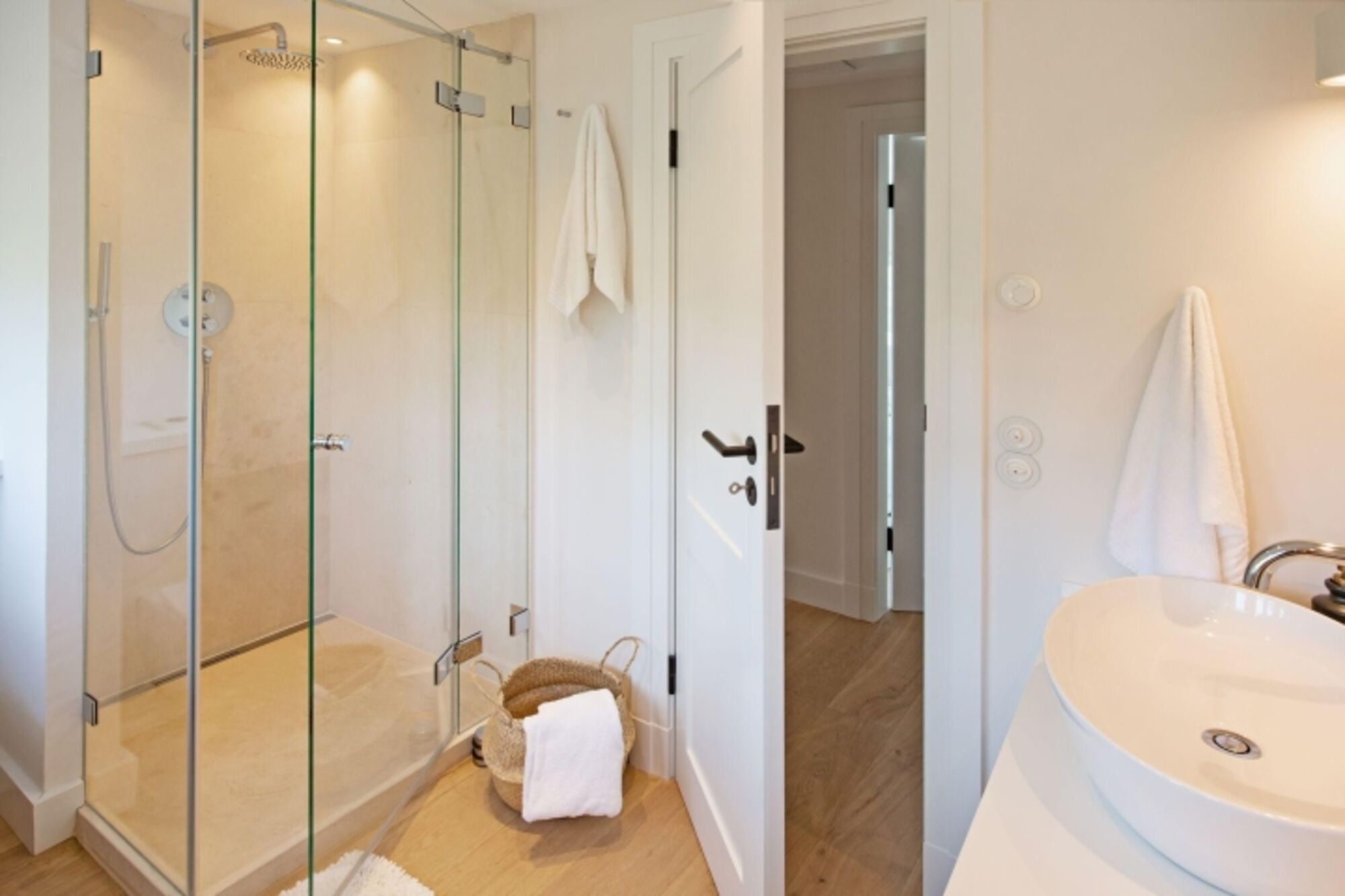 Modernes Reihenhaus mit gläserner Sauna und Meerblick