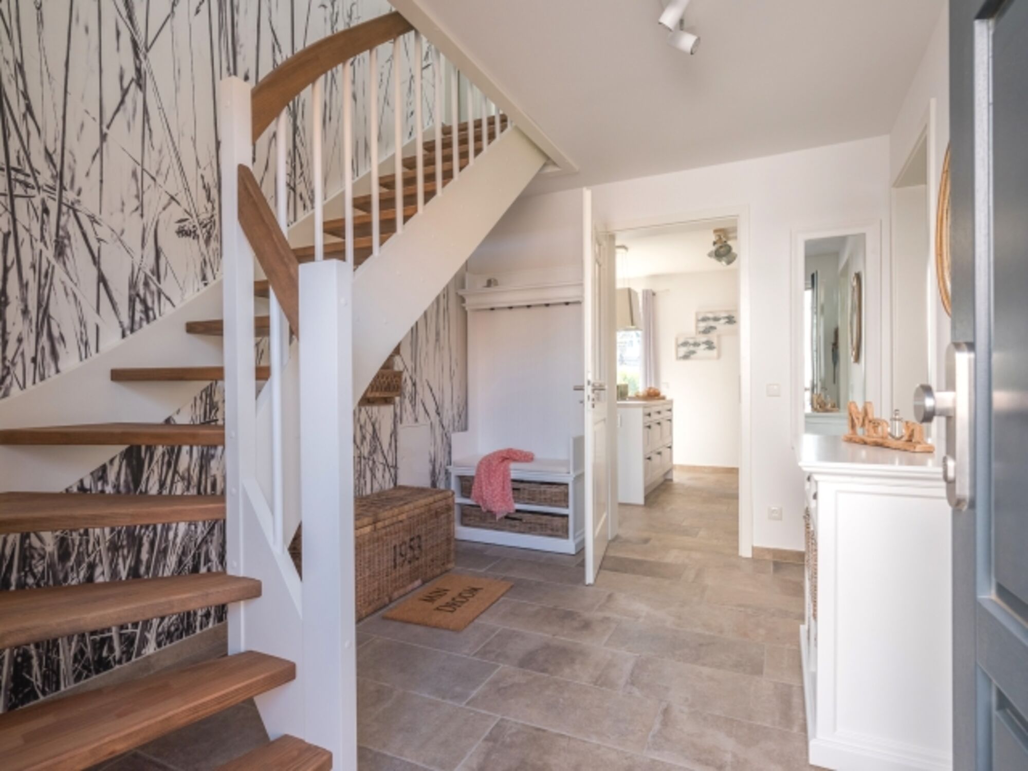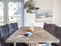 Es ist detailverliebt und mit viel maritimem Charme, eingerichtet. Der geschützte und begrünte Außenbereich steht für Sie zur Verfügung. Das Erdgeschoss gliedert sich in einen geräumigen Wohn- und Essbereich mit angrenzender, offener Küche. Eine vielseitig nutzbare Kochinsel lädt zum gemeinsamen Kochen ein und trennt den ausgedehnten Raum in gemütliche Bereiche. Alle Annehmlichkeiten des modernen Lifestyles, von Herd über Mikrowelle und Spülmaschine bis hin zu Kühlschrank mit Gefrierfach sind vorhanden. Ein großer Kamin wärmt an kalten Tagen und sorgt für eine romantische Stimmung. Das geschmackvoll ausgestattete Badezimmer mit Dusche und einer anliegenden Sauna bieten ein Flair zum Wohlfühlen.