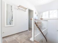 Im Obergeschoss sind die drei anheimelnden Schlafzimmer mit Boxspringbetten und Flatscreen TV Ihr Entspannungsbereich des behaglichen Hauses. Hier befindet sich ein großes Badezimmer mit geräumiger Dusche und WC.