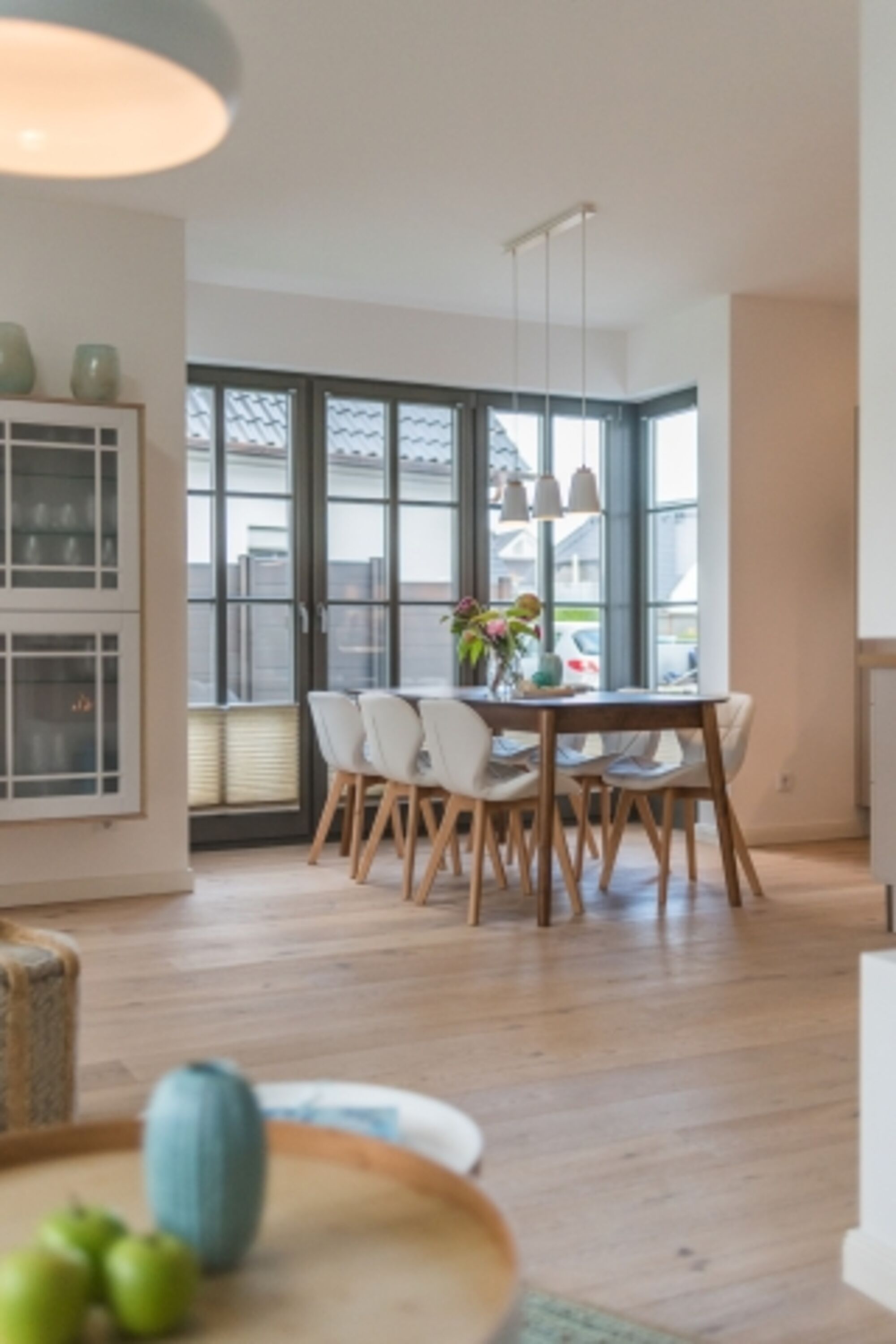 Im Erdgeschoss befindet sich ein heller und komfortabler Wohnbereich mit offener Küche und gemütlichem Essbereich. Die Küche ist voll ausgestattet und lässt keine Wünsche offen.