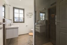 Im Obergeschoss befinden sich 2 Schlafzimmer sowie ein Badezimmer mit integrierter Sauna.