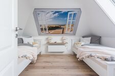 Unter dem Zingster Sternenhimmel befinden sich im Dachgeschoss zwei weitere gemütliche Einzelbetten. [nbsp]