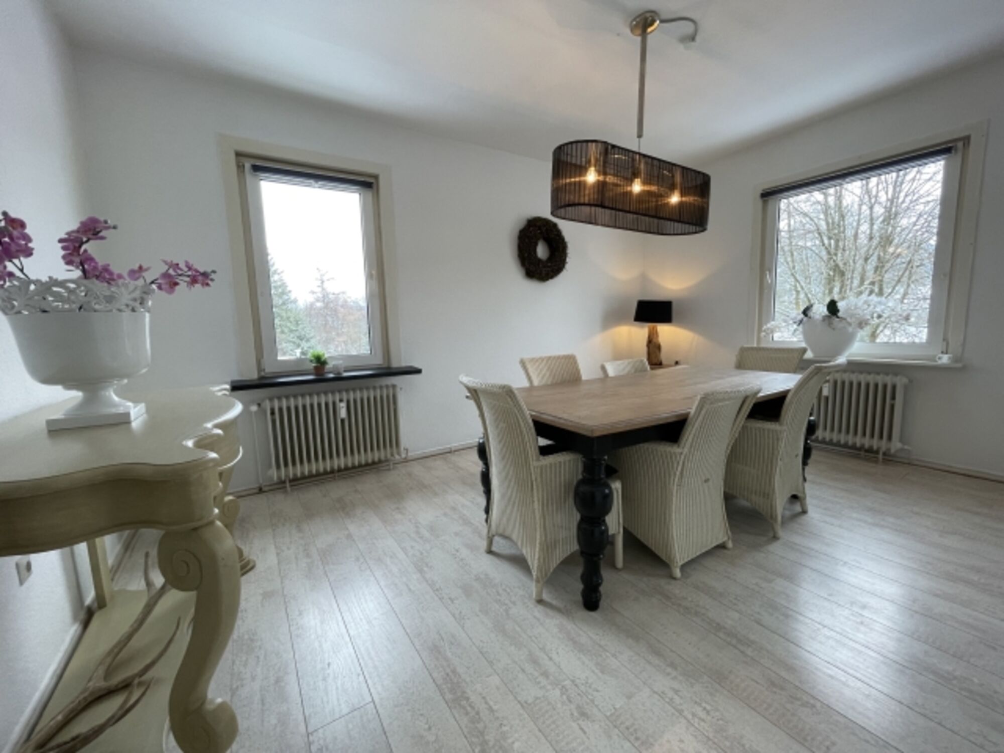 Auf 150Qm findet Ihr Platz für die ganze Familie. Aus dem Esszimmer habt Ihr einen Blick auf den schönen Bocksberg. Ein Willkommenspaket erwartet Euch bei uns.
