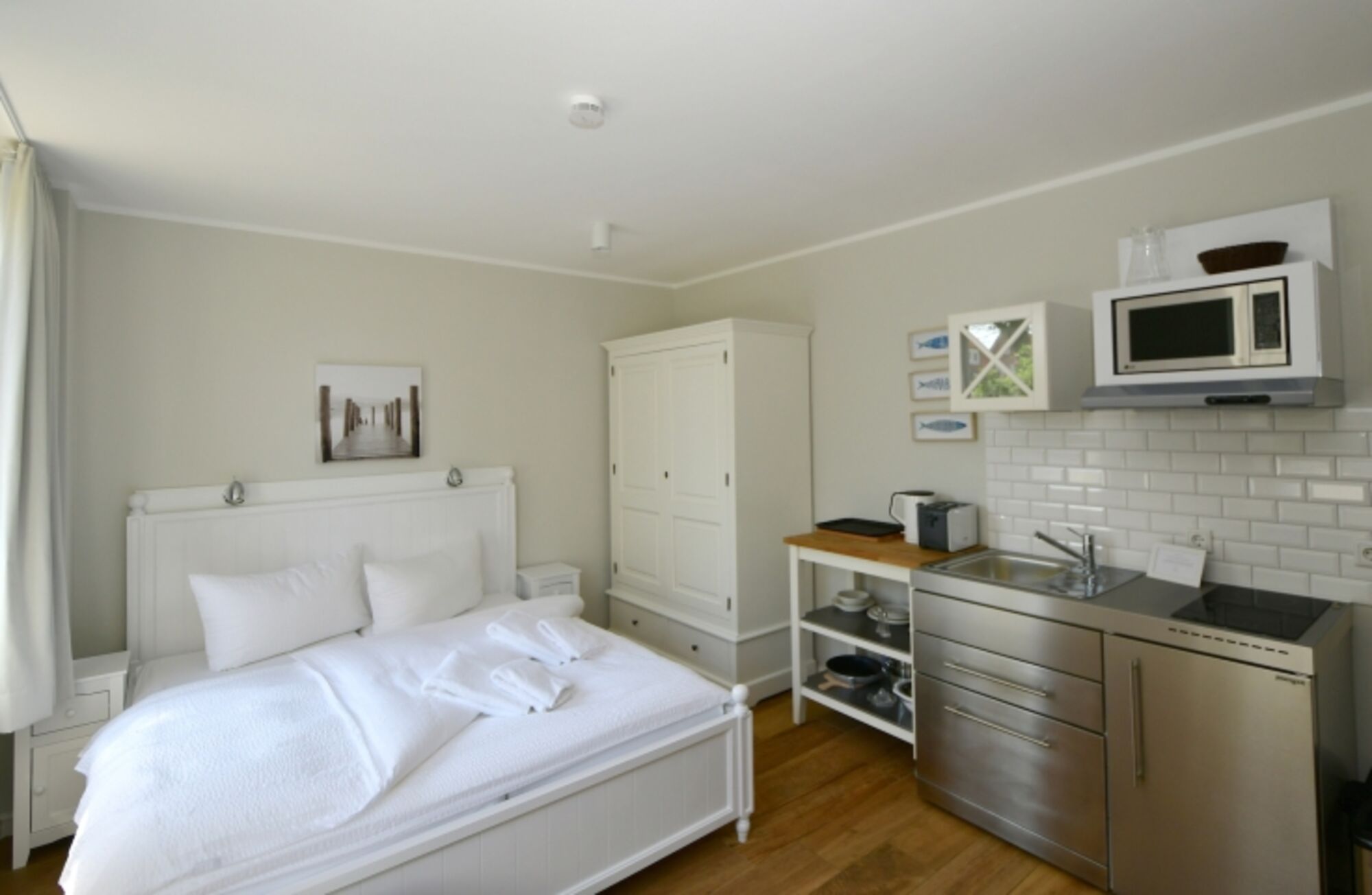 Herzlich willkommen in der Ferienwohnung Phyllis im Haus Delft! Die Wohnung wurde 2019 renoviert, Die Ferienwohnung Phyllis ist modern und hell eingerichtet und damit ein ideales Urlaubsdomizil für 2 Personen. Auf 20m² fühlen Sie sich direkt wohl und genießen die komfortable Gesamtausstattung mit kombiniertem Wohn- und Schlafbereich sowie kleiner Küchenzeile. Das Badezimmer verfügt über eine Dusche und WC.