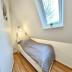 Das freundliche Schlafzimmer sorgt für erholsame Nächte. Das helle Badezimmer mit Fenster bietet modernen Komfort. Alle Fenster sind mit Plissees und Rollläden ausgestattet und lassen sich individuell verdunkeln. Bettwäsche und Handtücher können gegen Aufpreis hinzugebucht werden.