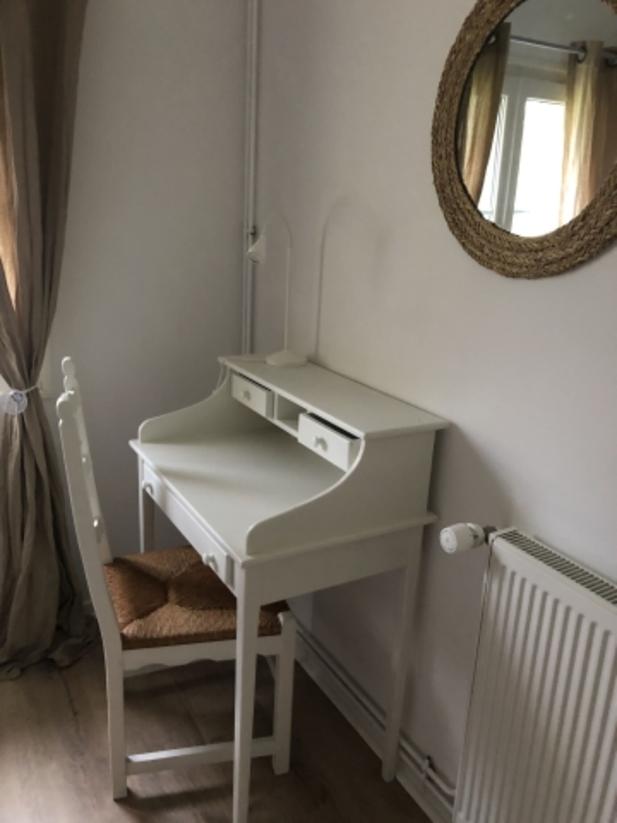 Kleiner Sekretär samt Stuhl im Zimmer Doppelbett 1,60 x 2,00m, Leselampe am Bett