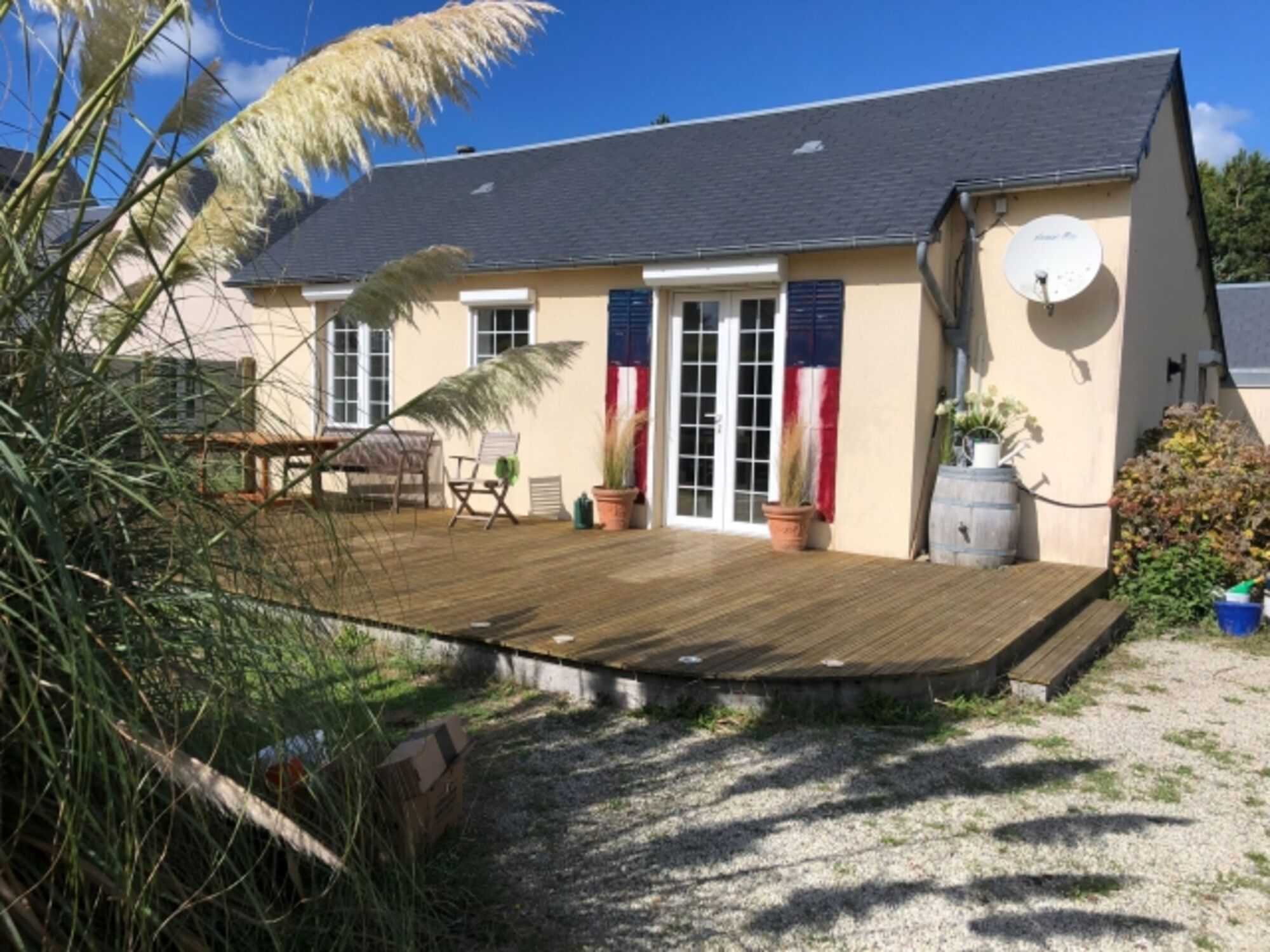 Unser ebenerdiges Ferienhaus "Maison Petite Mouette", die Kleine Möwe, in Denneville-Plage ist Ende Oktober 2022 'geschlüpft' und ist sofort zum Lieblingsort für viele Normandie-Besucher geworden und auf Anhieb alle ihre Gäste begeistert. Gäste, die die Ruhe der Normandie zu schätzen wissen. Die an kilometerlangen Stränden (mit oder ohne Hund/e) spazieren gehen oder durch die herrliche Dünenlandschaft streifen wollen. Die einfach ihre Seele baumeln lassen möchten. Die kein Remmidemmi erwarten. Die Kleine Möwe, perfekt für ein bis drei Erwachsene (Jugendliche ab etwa 13jährig), liegt dazu ideal - nur rund 120 Meter vom Meer (mit Blick auf die Kanalinsel Jersey) und etwa 400 Meter von den Dünen von Surville entfernt. Wer gut zu Fuß ist kann sogar am Strand entlang via Lindbergh bis ins Nachbarstädtchen Portbail wandern, die traumhafte Küste entlang, durch Dünenlandschaften und über eine uralte kleine Steinbrücke. Nach der Rückkehr bietet die große Terrasse des Maison Petite Mouette jede Menge Platz und meist auch viel Sonne, die man durch den gläsernen Windschutz auch an stürmischeren Tagen genießen kann.