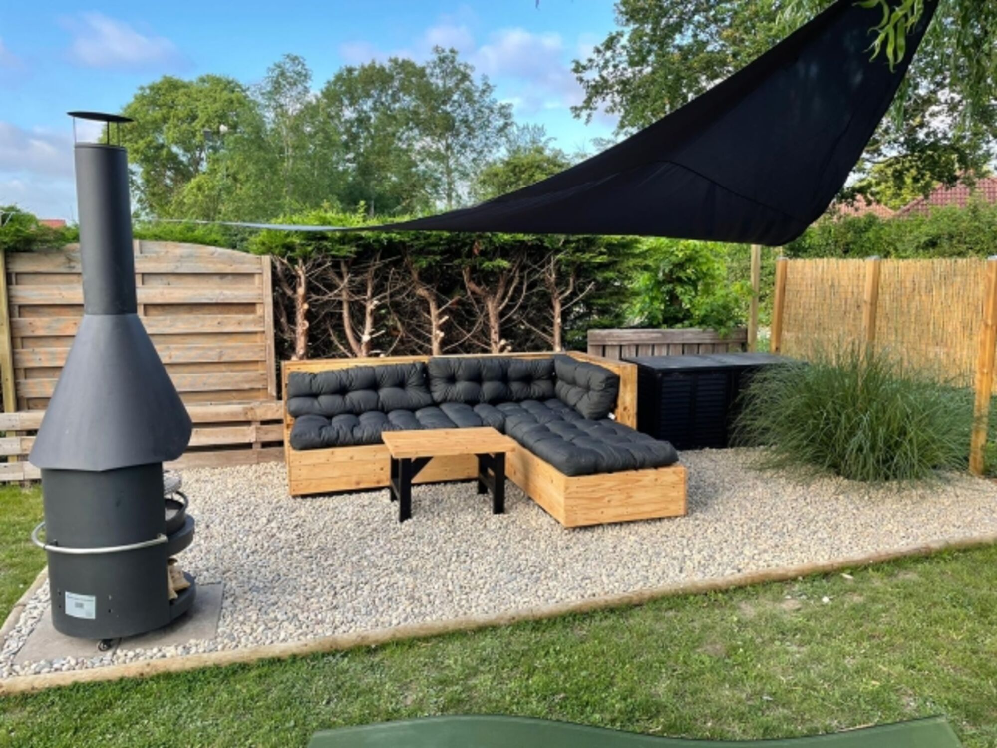 Liegewiese, Gartenmöbel, Kohlegrill, Bänke, Holzgrill, Außenkamin, Überdachte Terrasse (mobil)
