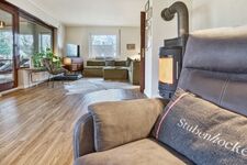 TV-Sat, TV-Flachbildschirm, CD-Player, Bücher, Kaminofen, Eckcouch, Sessel
