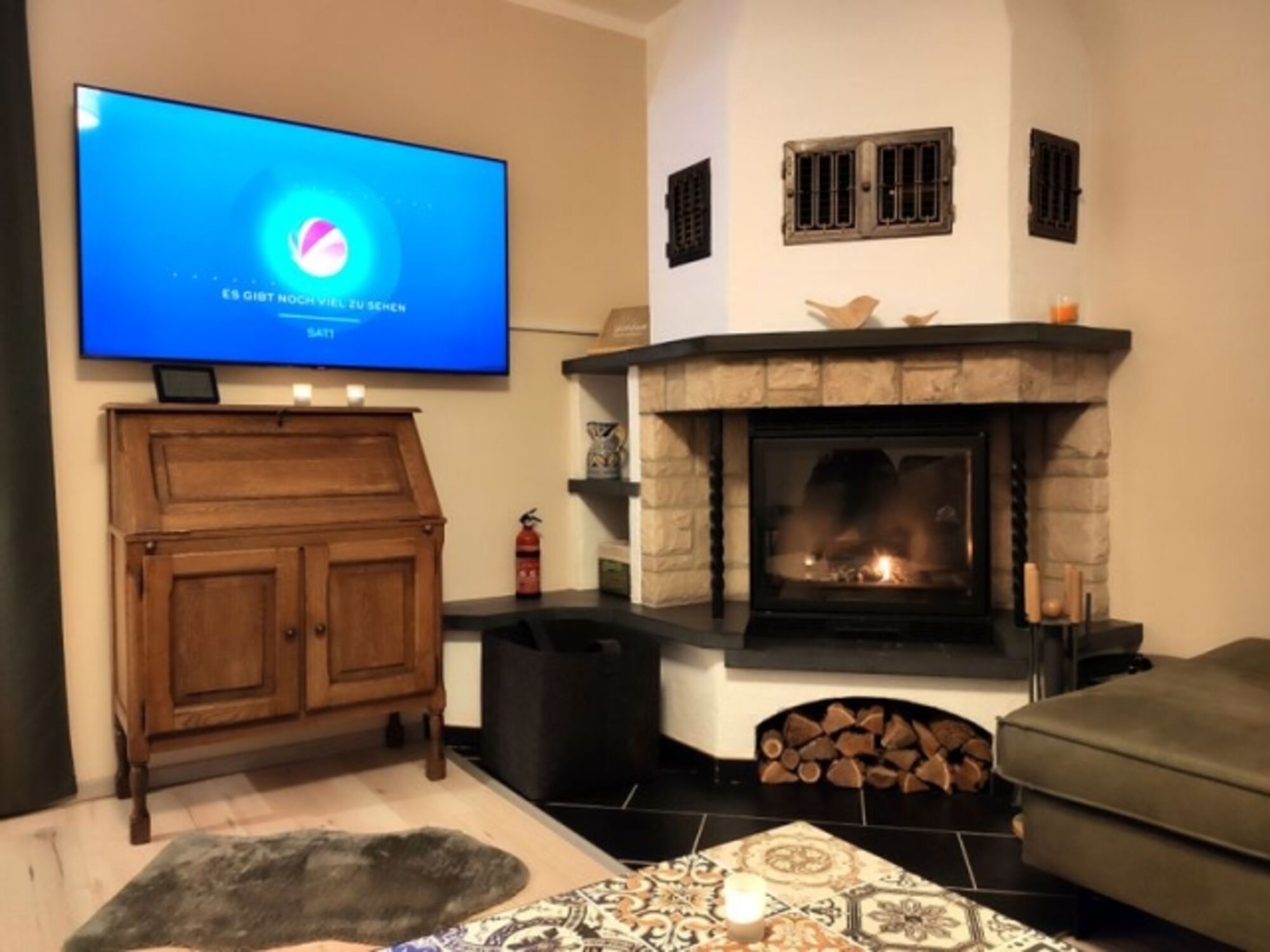 - Wohnzimmer mit Kamin und 55″-TV / Netflix kostenfrei