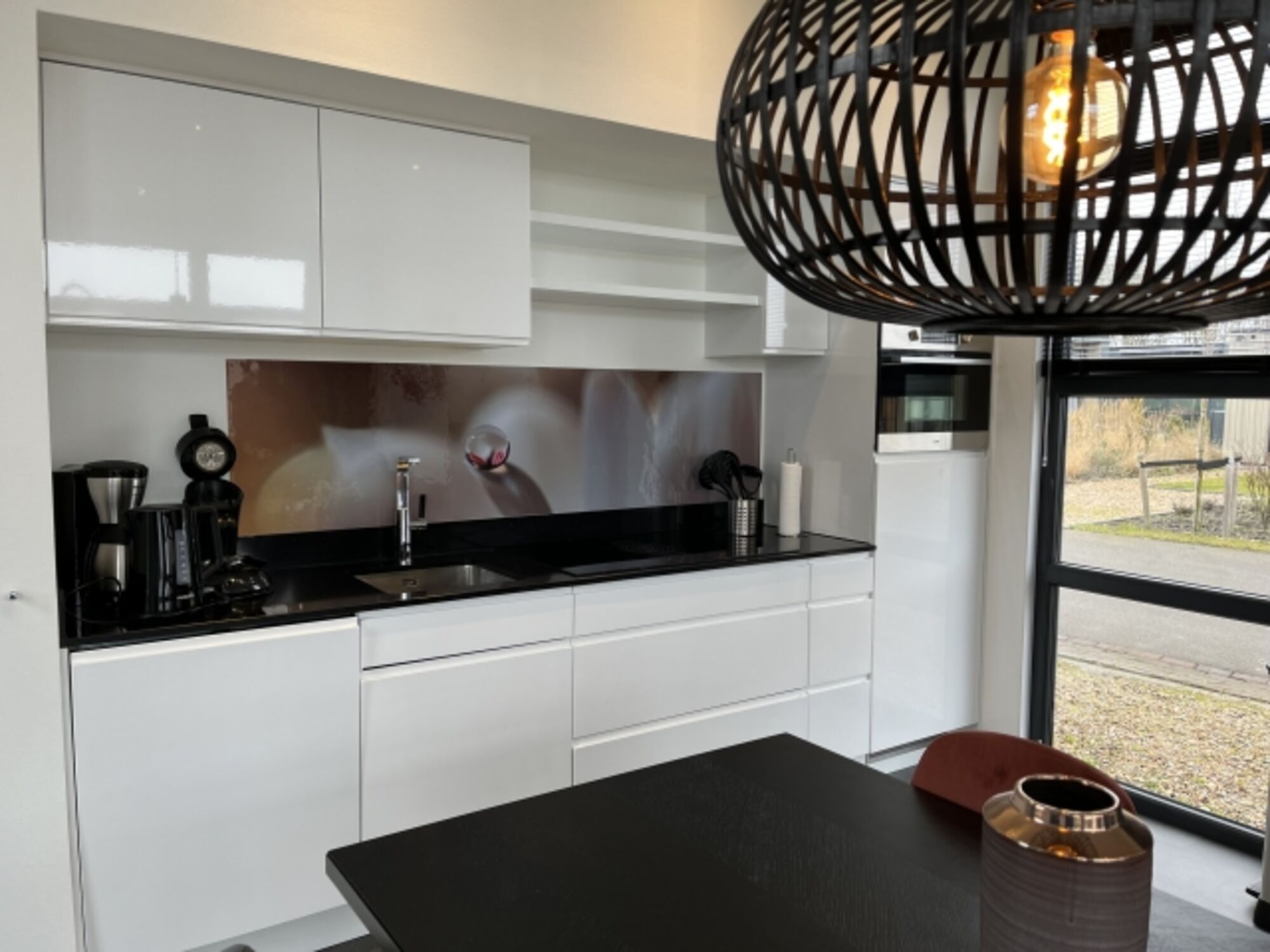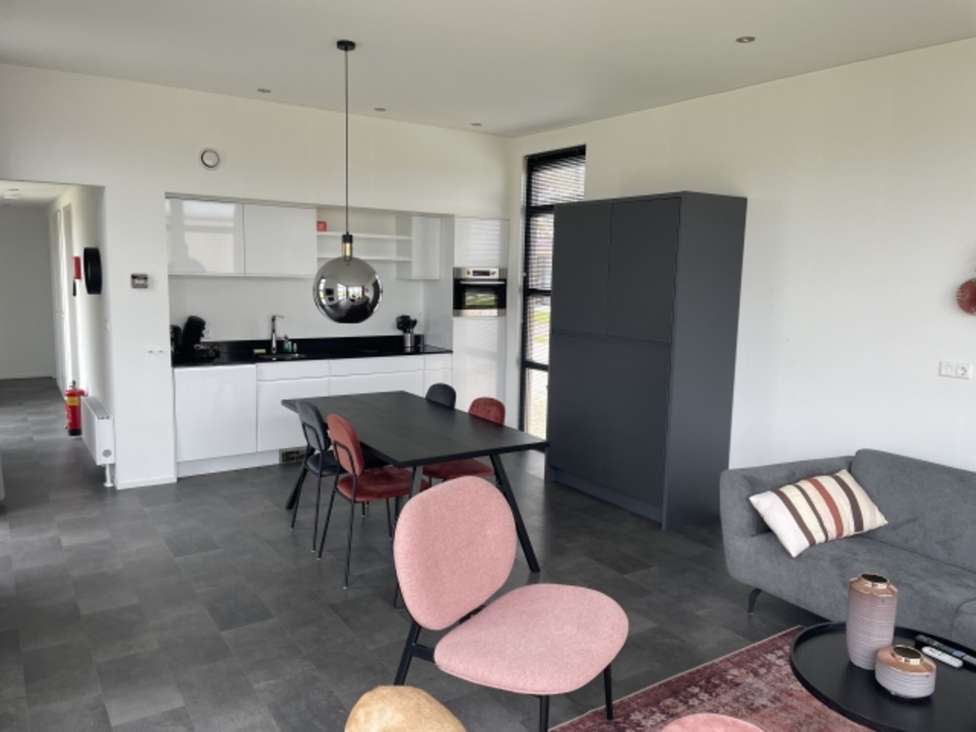 4-Platten Herd, Induktionsherd, Dunstabzugshaube, Gefrierschrank, Senseo-Kaffeeautomat, Korkenzieher / Flaschenöffner, Mülltüten, Essplatz in der Küche, TV in der Küche