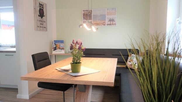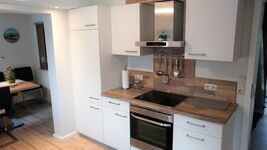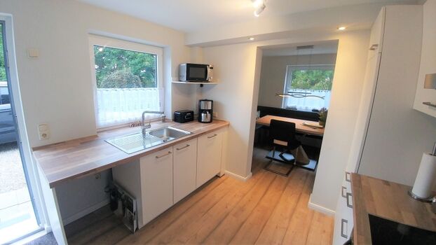 Auf ca. 70m² bietet die behagliche Wohnung genug Platz für 4 Personen + Baby. Im Erdgeschoss der Doppelhaushälfte befindet sich eine kleine Stube mit Schlafsofa und angeschlossenem Esszimmer. Die, an das Esszimmer grenzende voll ausgestattete neue Küche hat einen Ausgang in den vollständig eingezäunten, wunderschönen Garten, der von unseren Gästen genutzt werden darf.