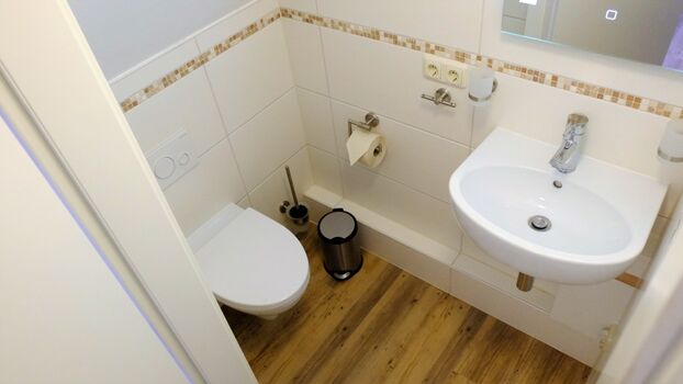 Im OG des Hauses befinden sich die beiden Schlafzimmer, eines mit Doppelbett, das zweite mit zwei Einzelbetten. Ein modernes Duschbad und die kleine Gästetoilette sorgen dafür, dass niemand lange warten muss ;-)