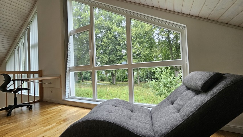 Das stilvoll eingerichtete Haus überzeugt mit liebevollen Details und einem durchdachten Raumkonzept. Drei gemütliche Schlafzimmer bieten Platz für bis zu 6 Personen. Der helle Wohnbereich mit integrierter Essecke im Wintergarten schafft eine angenehme Atmosphäre, und die großzügige, bestens ausgestattete Küche lässt keine Wünsche offen. Im Obergeschoss befindet sich – neben den Schlafzimmern und einem separaten Gäste-WC – eine offene Galerie mit Relaxliegen, von der aus Sie einen herrlichen Blick in den Garten und auf das Wasser genießen.