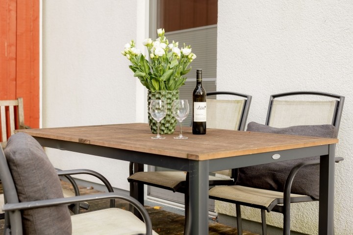 Erleben Sie wohltuende Momente in der hauseigenen Sauna mit Dusche und Whirlpool, lassen Sie auf den Relaxliegen Ihre Gedanken schweifen oder genießen Sie am Abend die behagliche Wärme des Kamins. Die sonnige, möblierte Holzterrasse im Garten lädt zum Verweilen ein – ob mit einem Buch in der Hand, einem Glas Wein oder als Startpunkt für ausgedehnte Radtouren, eine Bootsfahrt auf der Vechte oder einen entspannten Stadtbummel. Die Möglichkeiten für unvergessliche Urlaubstage sind vielfältig.