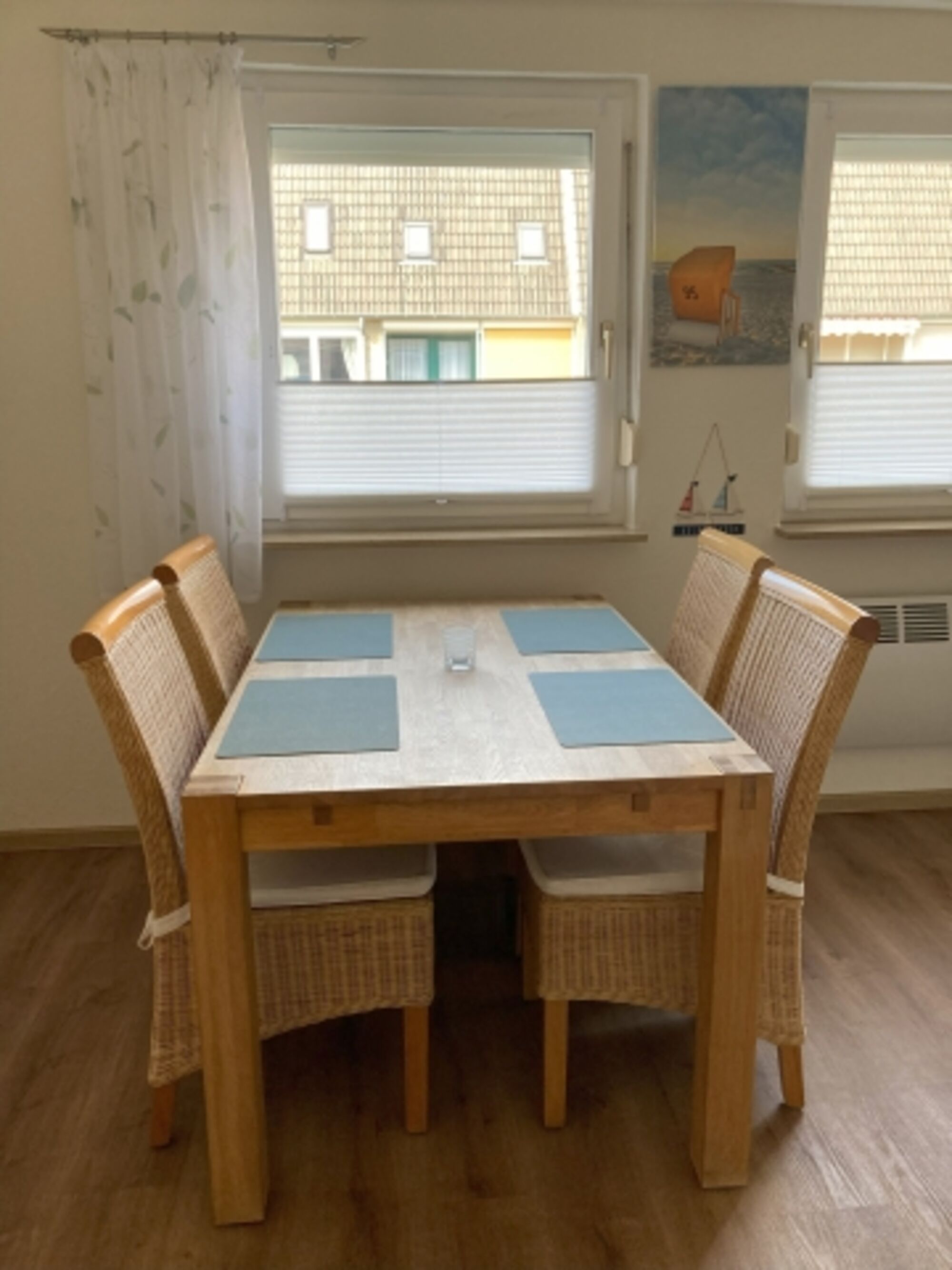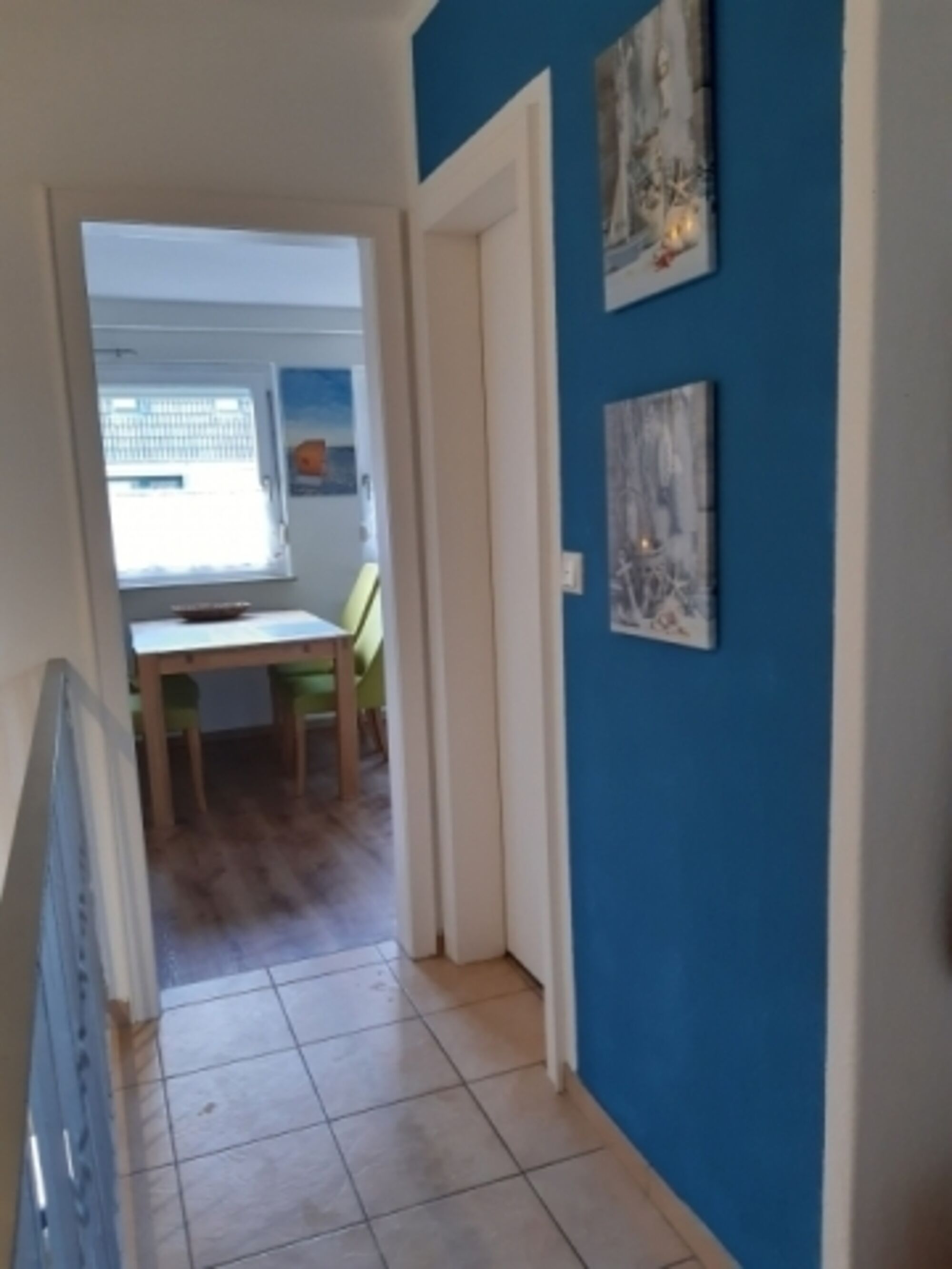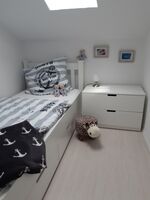In der oberen Etage eines Reihenhauses, ausgestattet mit zwei Schlafzimmern im Dachgeschoss, hellem modernen Wohnzimmer und komplett ausgestatteter Wohnküche können Sie Ihre Ferien genießen. Im Wohnzimmer stehen ein Flachbildfernseher und ein Blue Ray Player zur Verfügung, ein Internet/WLAN-Zugang ist ebenfalls vorhanden. Ein zweiter Fernseher befindet sich im Schlafzimmer. Zur Zeitvertreib liegen Spiele bereit. In dem kleinen Holzhaus, das sich gegenüber dem Eingang befindet, können Sie Fahrräder oder Kinderwagen abstellen. Ein Bollerwagen steht zu Ihrer Verfügung.
