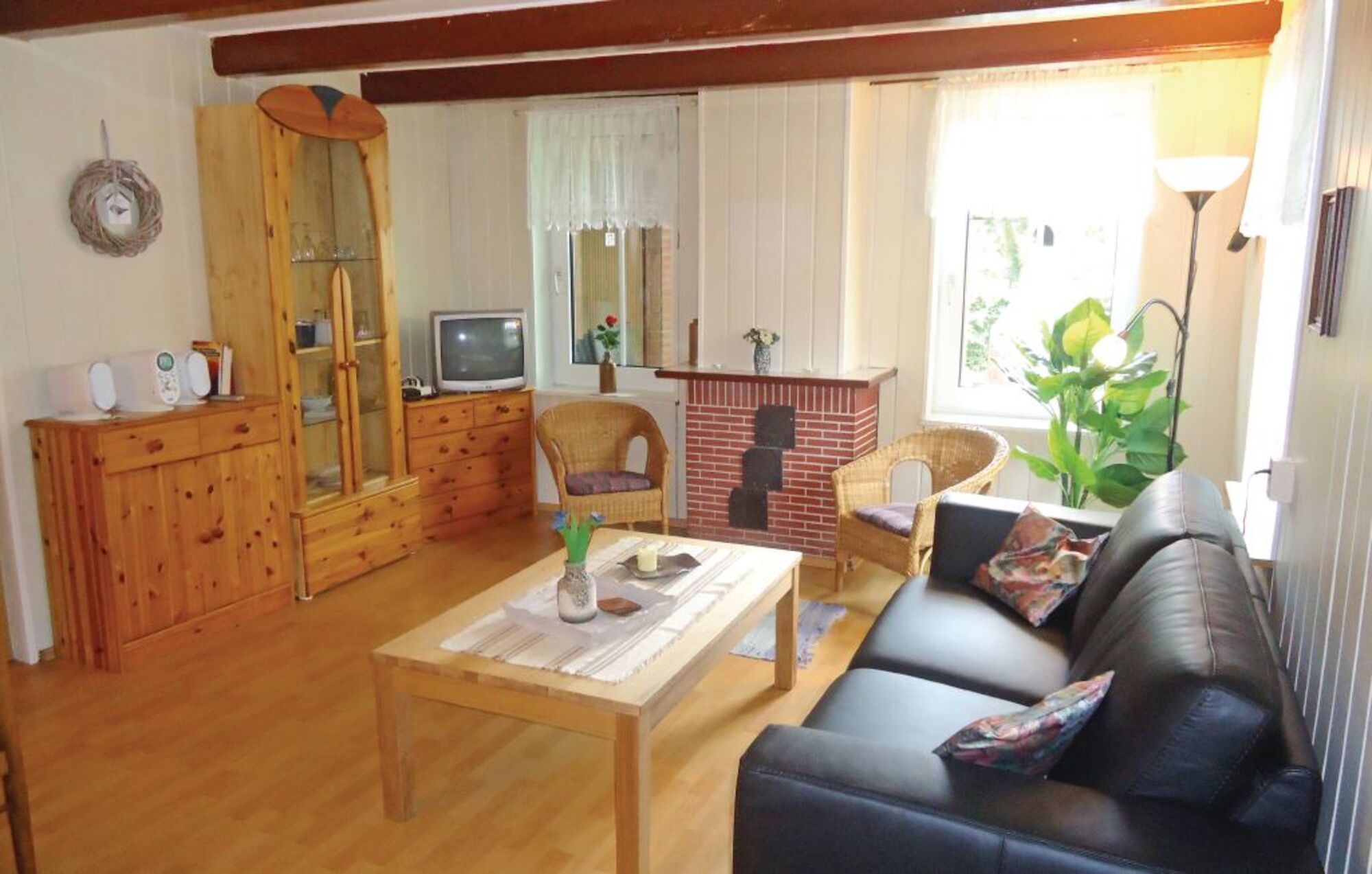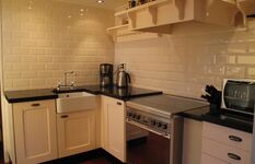Einrichtung: Die Doppelhaushälfte hat einen Wohnfläche von ca 80 qm. Der hintere Garten liegt direkt am Seedeich. Vom Wohnzimmer aus haben Sie einen wunderbaren freien Blick über die Felder. Das Ferienhaus verfügt über allen modernen Komfort und eine sehr komplette Küchenausstattung. Wohnzimmer mit Sitzgruppe und Bollerofen, SAT-TV mit Deutschen Programmen, Essplatz. Küche mit 4-Flammen Gasherd, Mikrowelle, Kühlschrank mit Gefrierfach, Kaffeemaschine.