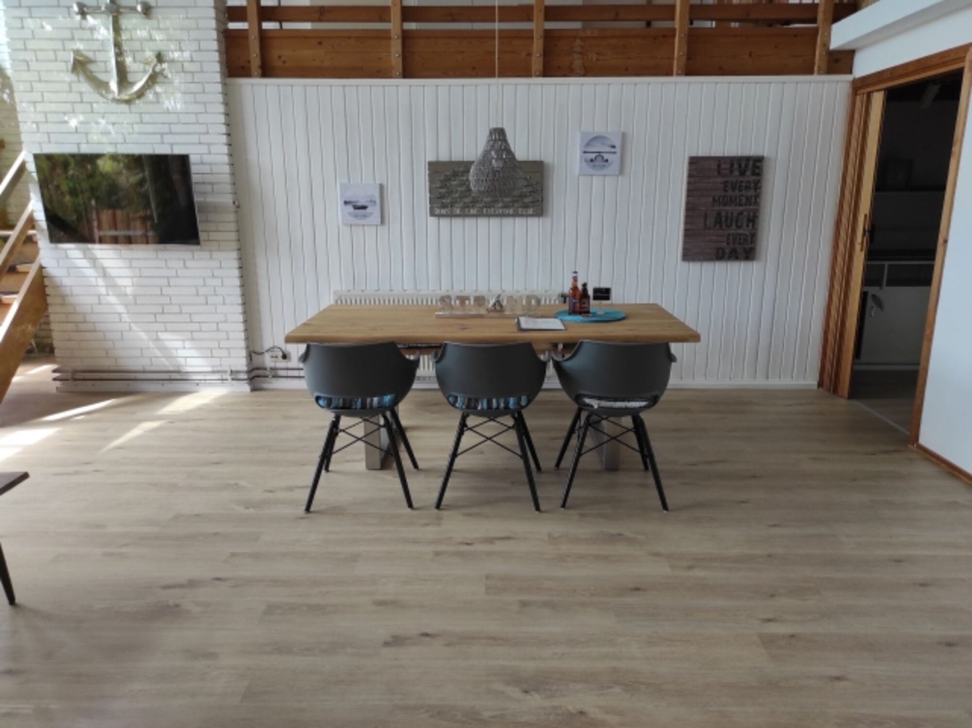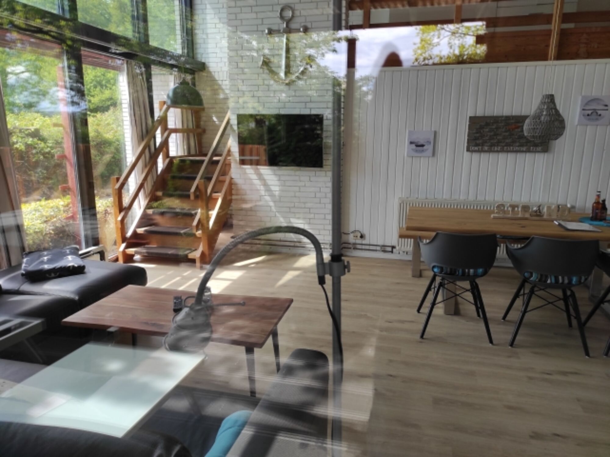 Diese Fewo ist 2 Geschossig und wirkt mit 5m Höhe im Wohnzimmer grosszügig und ist grossflächig verglast und hell. Es gibt eine separate gut ausgestattete Küche, ein Schlafzimmer im 1. OG mit Doppelbett (180x200m) & 1 separates Schlafzimmer mit 2 Einzelkinderbetten. Es gibt 1 Badezimmer mit Dusche & WC das direkt vom Elternschlafzimmer betretbar ist und ein separates WC. Ein Balkon beim Elternschlafzimmer und 1 Terrasse vor dem Eingang runden das Urlaubserlebnis ab.