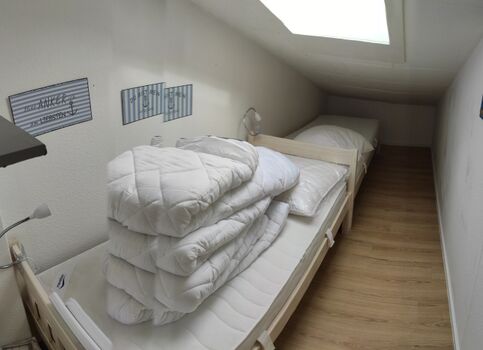 In diesem Zimmer können nur Kinder untergebracht werden (aufgrund der Dachschräge und den Kinderbetten) Einzelbett