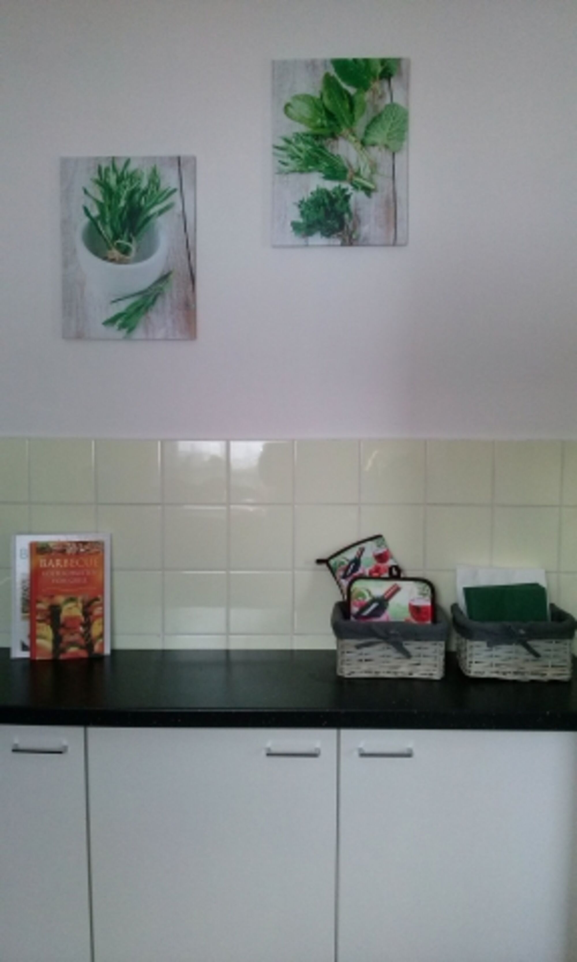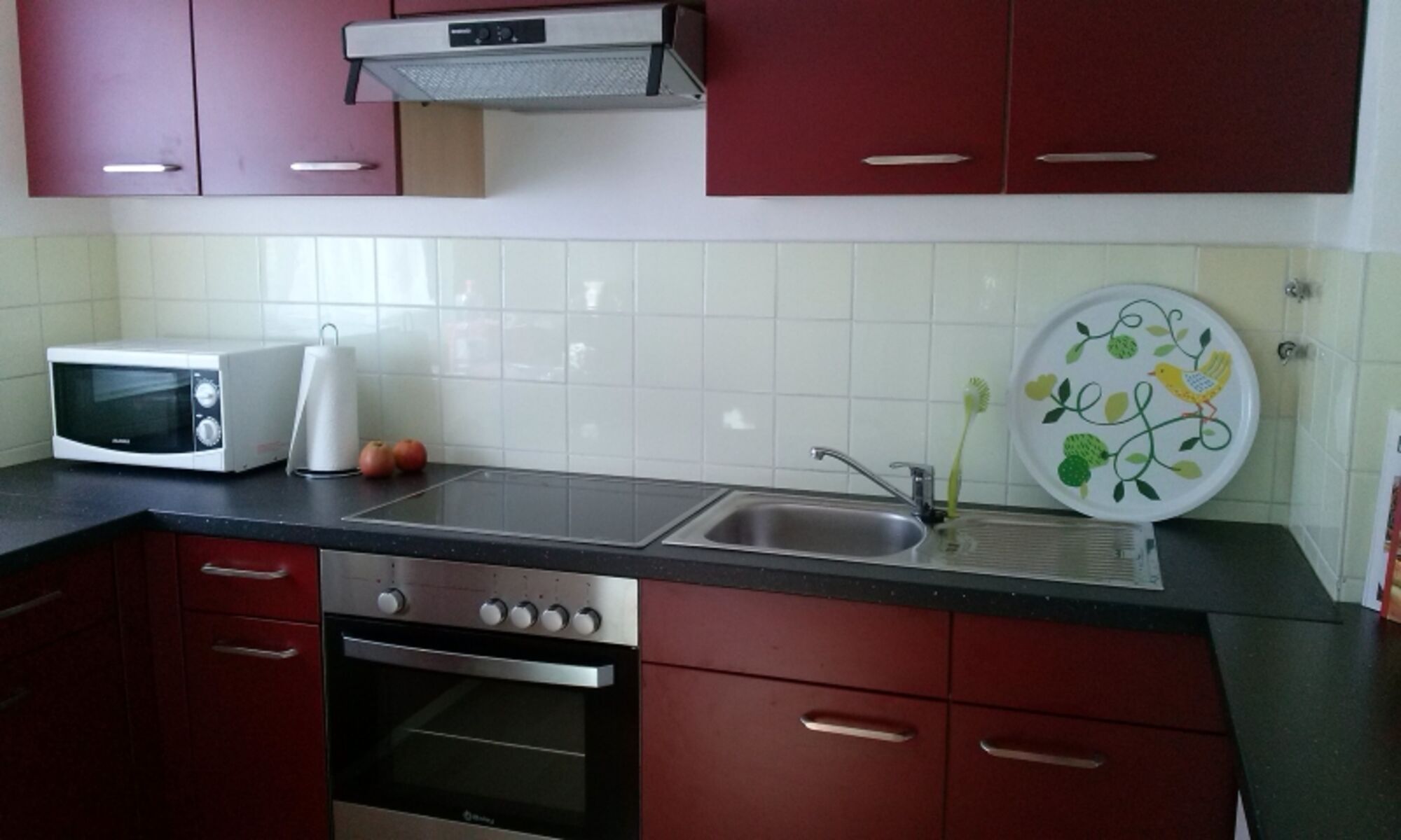 4-Platten Herd, Cerankochfeld, Dunstabzugshaube, Korkenzieher / Flaschenöffner, Gewürze (Salz, Pfeffer, Zucker), Öl / Essig, Geschirrhandtücher, Mülltüten