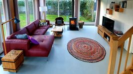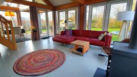 Das in dieser Zeit Sparsam - und Umweltfreundlich gebaute Haus verfügt über viel Glas und Holz. Das Haus ist von allen Annehmlichkeiten versehen und hat ein stilvolles Wohnzimmer mit Holzkamin, einem schönem Essbereich und einer komplett ausgestatteten Küche. Es stehen Ihnen viele Fernsehprogramme zur Verfügung. Des Weiteren finden Sie im Haus drei tolle Schlafzimmer und ein modernes Badezimmer mit einer Infrarotsauna.