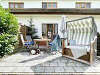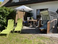 Auf der Terrasse stehen Dir ein Strandkorb, Gartenmöbel, Sonnenliege und Sonnenschirm für entspannte Stunden zur Verfügung. Vom Haus gelangst Du direkt über einen eigenen Zugang zum schönen Naturstrand - ein besonderes Highlight.