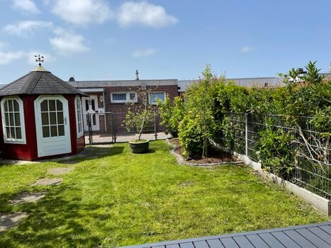 Das Ferienhaus verfügt über einen eigenen Garten, der komplett eingezäunt ist. Einen Zugang hat man über das Wohnzimmer bzw. auch über einen Seitenweg.
