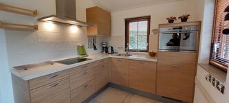4-Platten Herd, Kühlschrank mit Gefrierfach, Kaffeevollautomat, Mülltüten