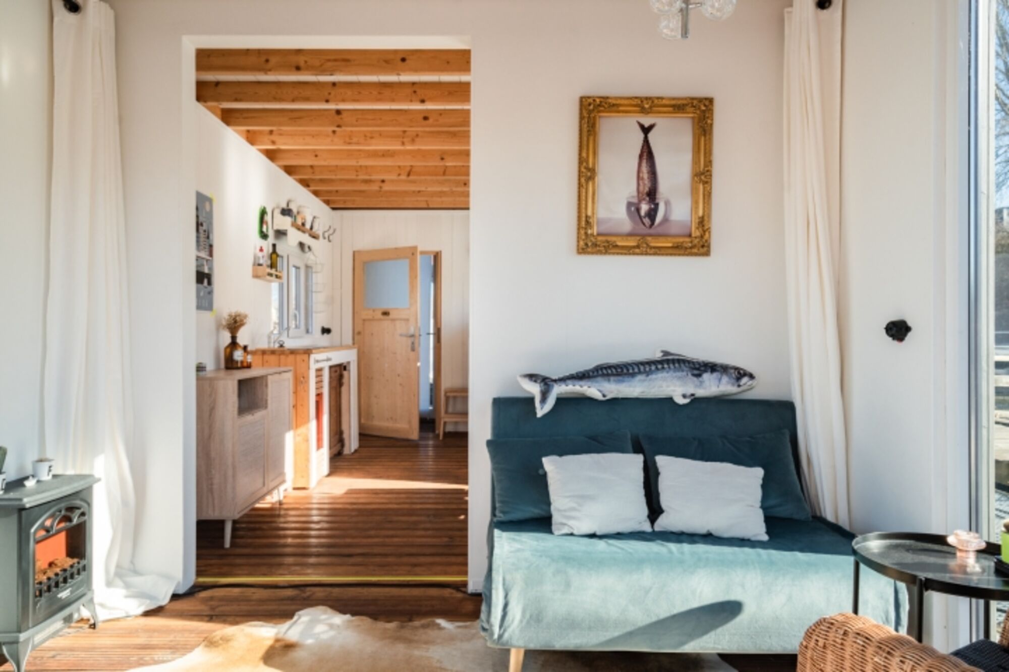 Dem Wasser ganz nah: Tolles Tiny-Hausboot mit Holzofen und Dachterrasse