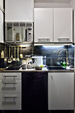 Die "Auszeit" ist eine von insgesamt 3 Ferienwohnungen. Sie hat eine Wohnfläche von ca. 30 qm. Im Eingangsbereich befindet sich eine kleine Einbauküche mit zwei Induktionsplatten zum kochen. Eine Dunstabzugshaube mit Mikrowelle/Backofen, eine schöne tiefe Spüle und jede Menge Küchenutensilien. Das Geschirrset ist ausgelegt für 4 Personen.
