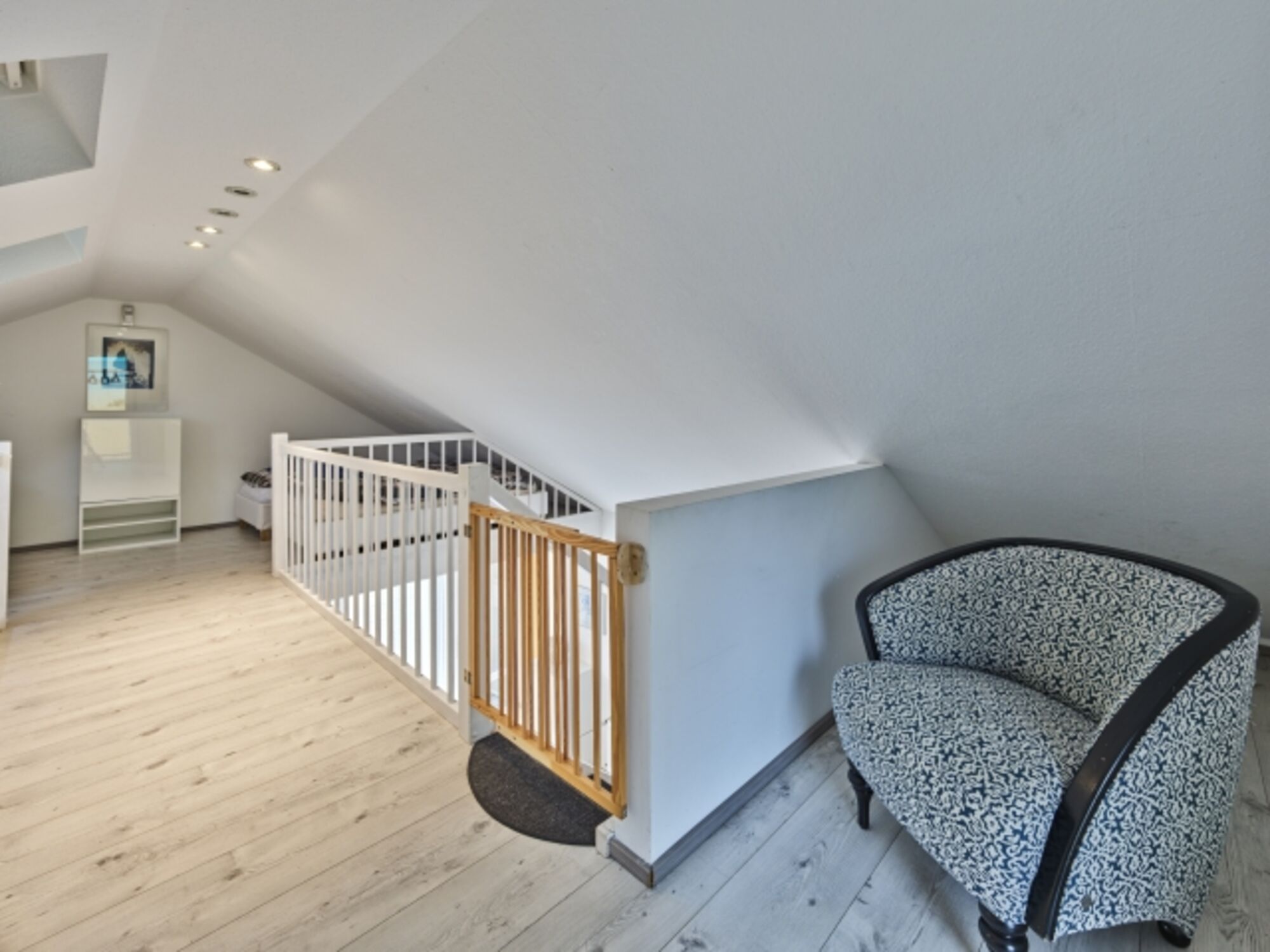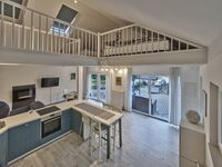Unser Ferienhaus verfügt über eine vollausgestattete Küche mit einem offenem und großen Wohn- und Essbereich, in dem man zusammen kochen und das Beisammensein genießen kann. Von hier aus geht es auch zur Terrasse. Diese ist kommplett eingezäunt, so können Vierbeiner und kleine Zweibeiner das Wetter draußen sicher genießen.Das Haus Tierfreund bekommt durch die Galerie einen besonderen Flaire. Auf dieser befinden sich die Schlafmöglichkeiten und Sie haben einen Blick auf die untere Etage. Hier ist die Deckenhöhe durch die Schrägen leicht eingeschränkt.