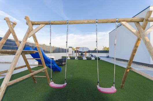 Der Hof ist ideal für Kinder, da es einen Swimmingpool und einen Spielplatz gibt.