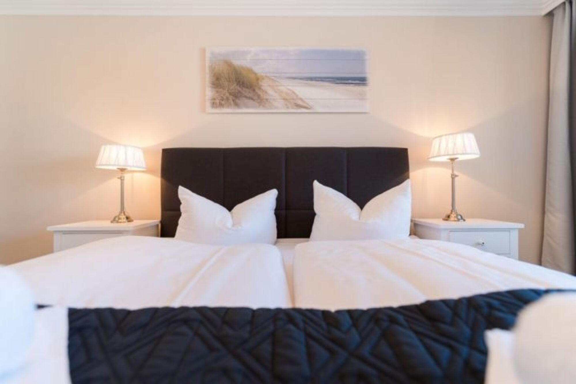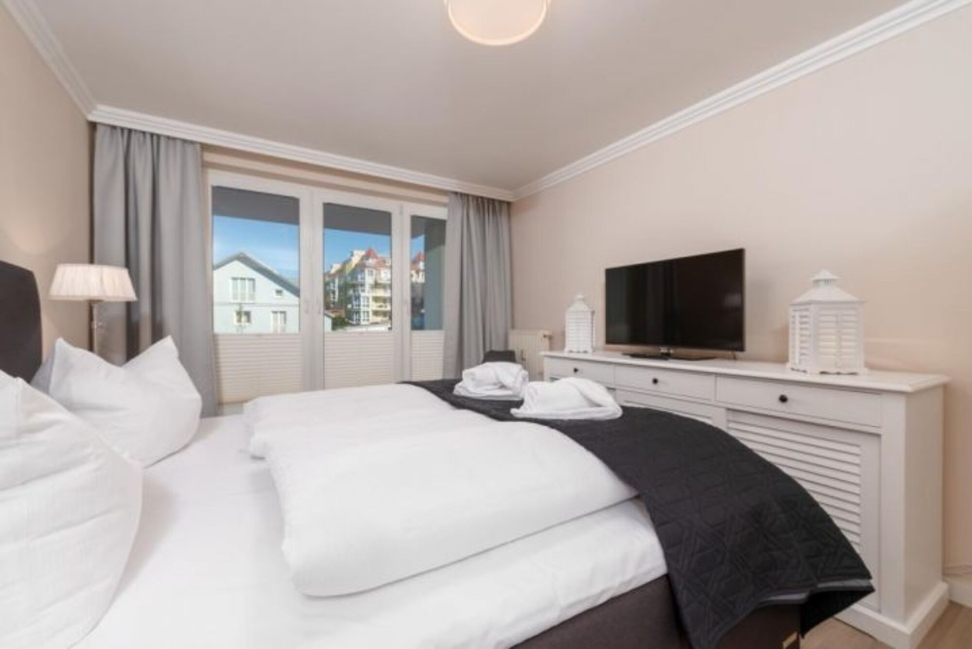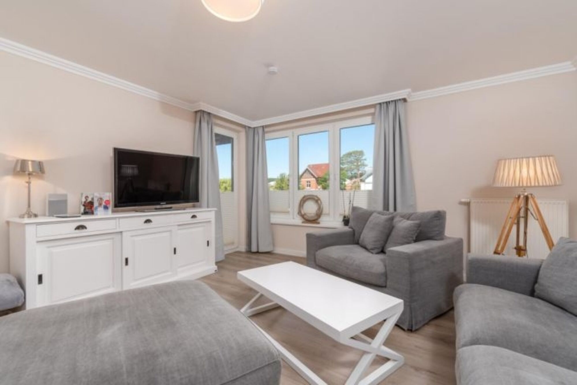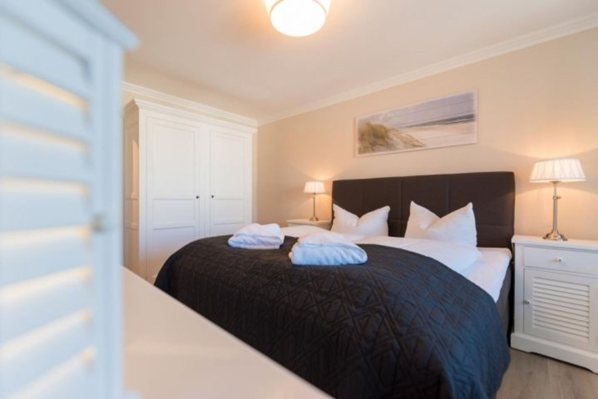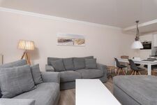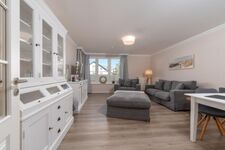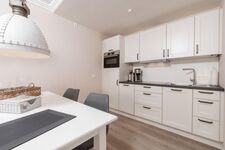 Das Appartement für bis zu 4 Personen wurde mit viel Liebe zum Detail im Dezember 2017 komplett saniert und neu eingerichtet. Sie finden hier alle Annehmlichkeiten: 2 x Flatscreen-TV, Bose-Bluetooth-Radio und einen kostenfreien WLAN-Zugang. Das Schlafzimmer ist mit einem gemütlichen Boxspring-Bett, einem Schrank und einer Kommode ausgestattet. Die offene Einbauküche ist komplett ausgestattet mit Kühlschrank, Backofen, Induktionskochfeld, Geschirrspüler, Kaffeemaschine, Toaster und Wasserkocher. Im Badezimmer finden Sie WC, Dusche und Fön. Eine im Wohnzimmer befindliche Couch kann bei Bedarf als komfortables Schlafsofa (140cm x 180cm) genutzt werden. Des Weiteren warten im Wohnbereich ein gemütlicher Lovechair mit Hocker sowie ein Esstisch für max. 5 Personen. Sämtliche Fenster sind mit Thermo-Plissees sowie Vorhängen zum verdunkeln der Räume ausgestattet.