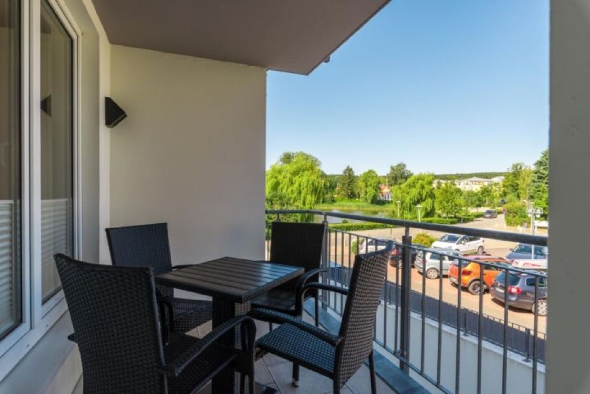 In der hauseigenen Tiefgarage steht ein Stellplatz für Fahrzeuge mit einer max. Fahrzeughöhe von 1,50 m x 5,00 m in der Tiefgarage mit Doppelparksystem zur Verfügung. Im Haus 1 ist ein Lift vorhanden. Ein Restaurant befindet sich direkt an der Strandpromenade im Seehof.