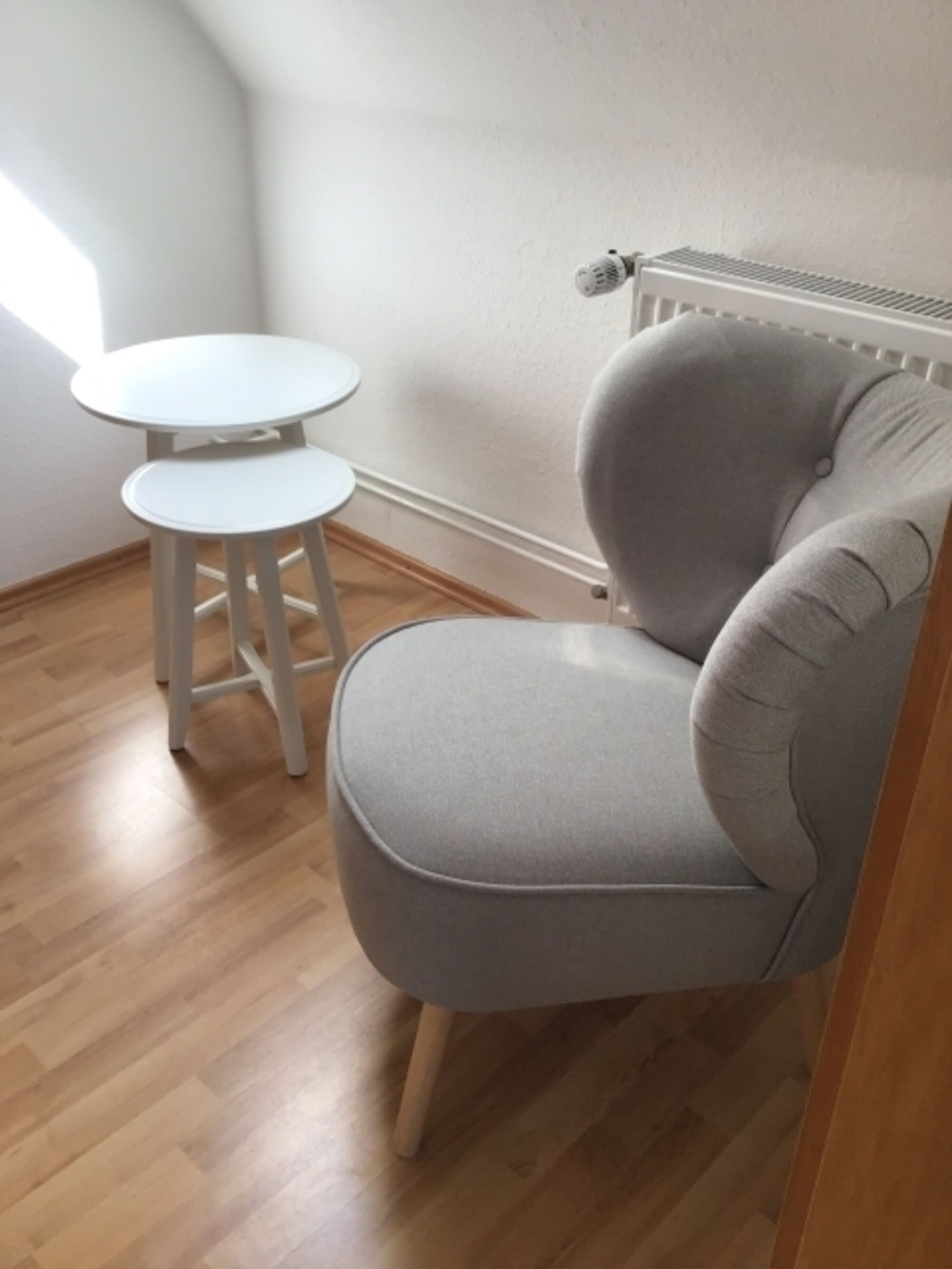 Im Erdgeschoss befinden sich Küche sowie das große Wohn-und Esszimmer.Das Elternschlafzimmer,Kinderzimmer und das Badezimmer/WC befinden sich im Obergeschoss.Hinterm Haus befindet sich der PKW Stellplatz sowie eine abschließbare Garage für Fahrräder oder Sportequipment.